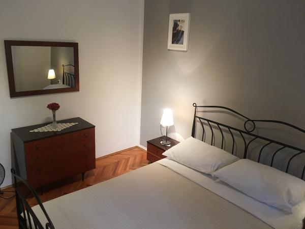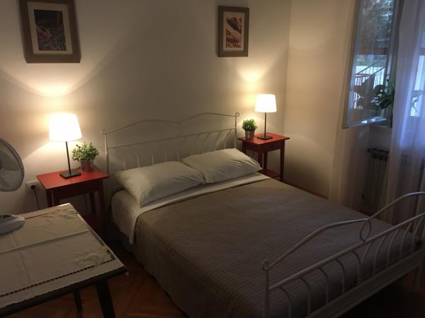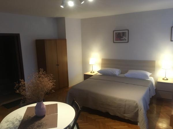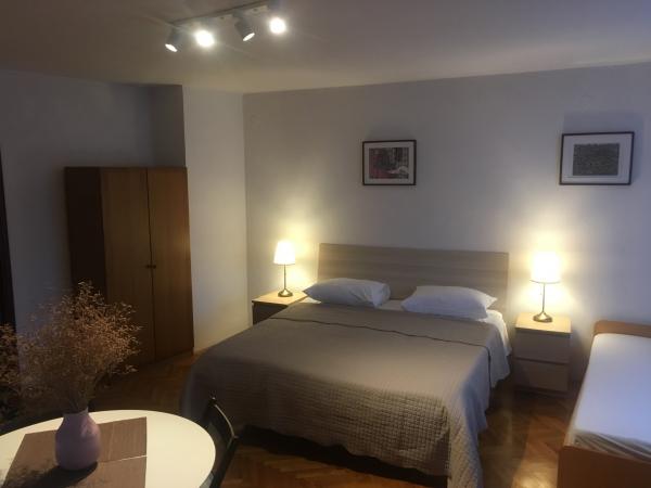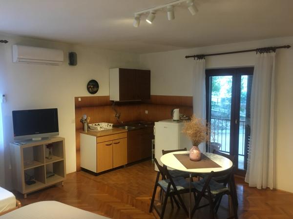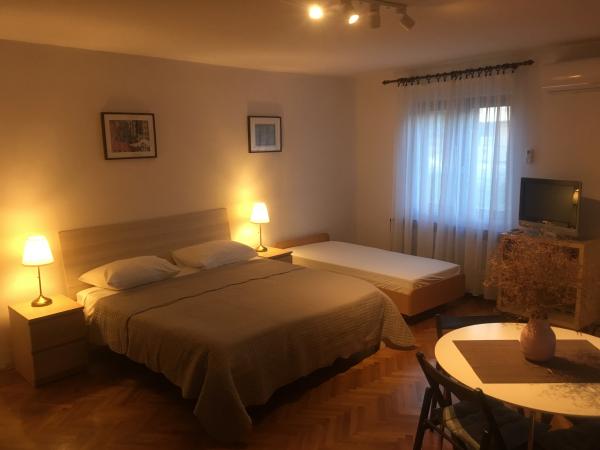 Apartments in the town center, located 2-3 minutes walk from all the city's beaches. The house is in a pine forest that creates a natural air conditioning. In a large yard, you are secured parking, and children can play safely and peacefully. All apartments have a terrace with the possibility of using the grill. Welcome!