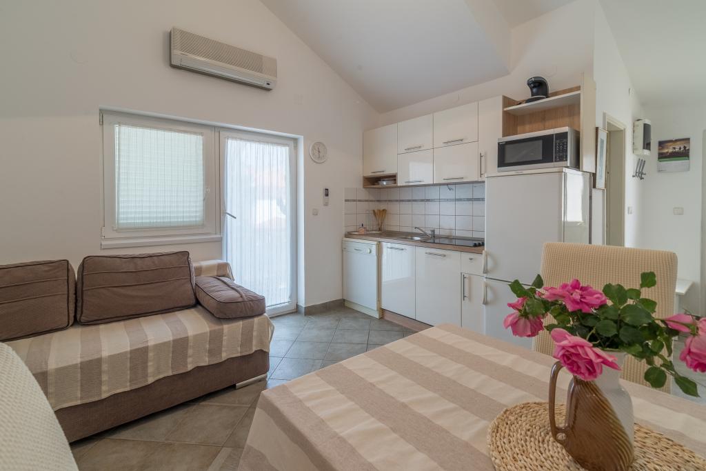 Apartment house Lucija is situated in an excellent location in a peaceful and quiet street just 5 min. easy walk from the main city beach Dražica, which has been declared the best equipped beach in the Republic of Croatia, as well as all other facilities necessary for a pleasant summer holiday that Biograd abounds in. The house has 4 apartments, all 40m2 in size, and they consist of one bedroom with a double bed, a living room with a sofa bed for 2 people, a fully equipped kitchen with a dishwasher, a bathroom with a shower and toilet and a washing machine, and an entrance area. The apartments on the 1st floor A-1 and A-2 have large terraces of 30 m2, and those on the 2nd floor A-3 and A-4 have balconies of 12m2. All apartments are superbly equipped: air conditioning, WiFi, SatTv, beds with memory foam mattresses, kitchens with dishwasher, large refrigerator with freezer, microwave and coffee/tea maker and everything you need for preparing and serving meals. Parking and summer kitchen with a large barbecue in the yard.