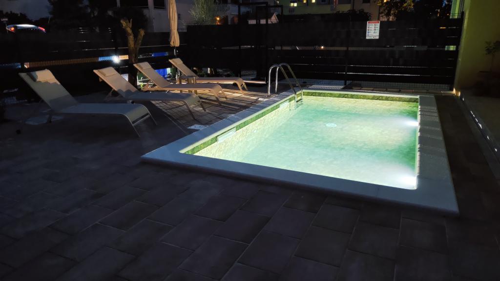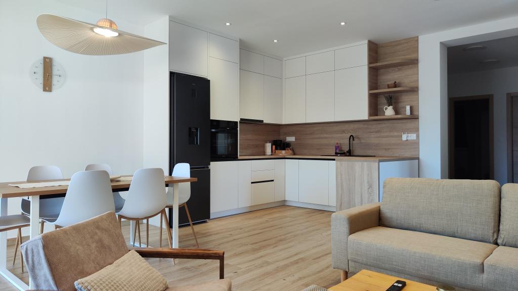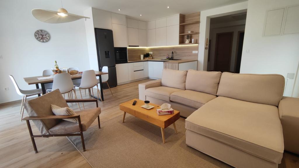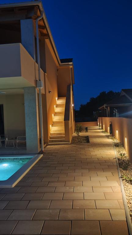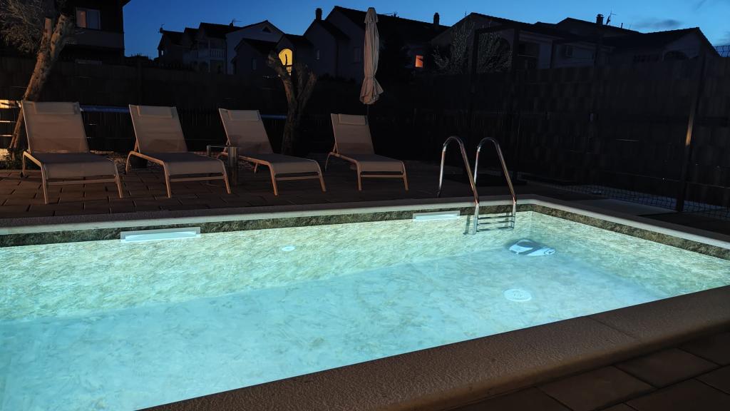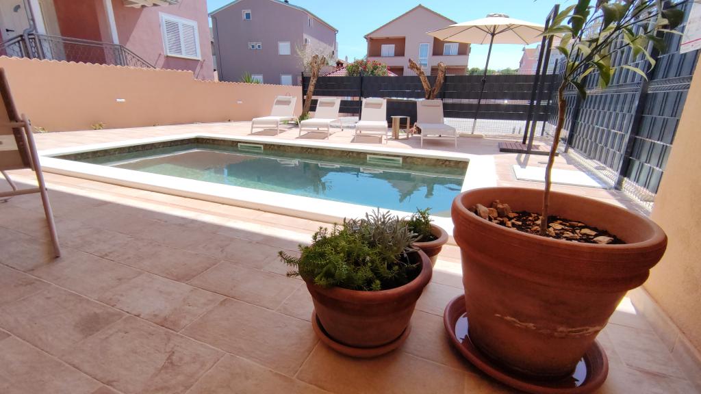Newly built two-storey holiday house with swimming pool and two separate residential units (ground floor and first floor). Each residential unit is 90 square meters and is equipped with 3 bedrooms, kitchen, bathroom, terrace and living room. Parking is provided.
