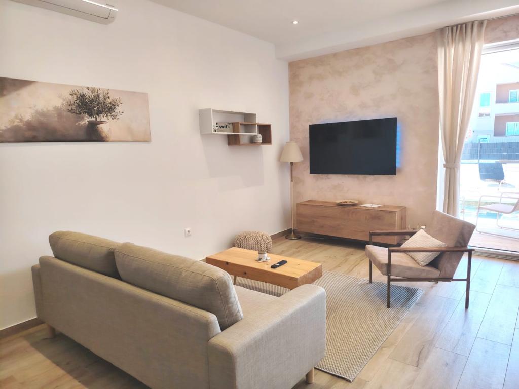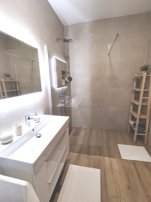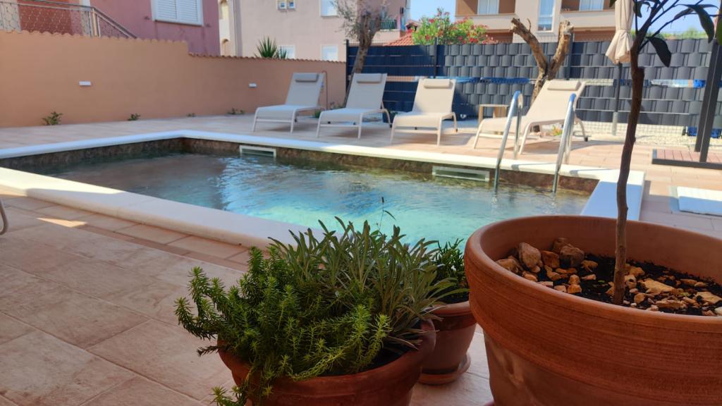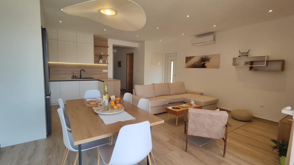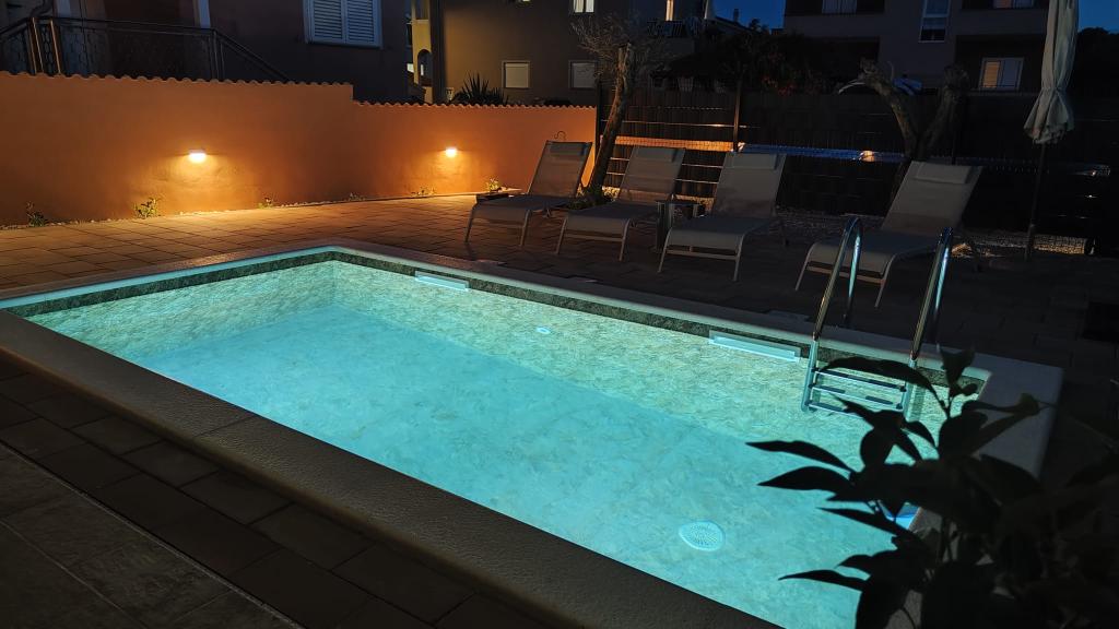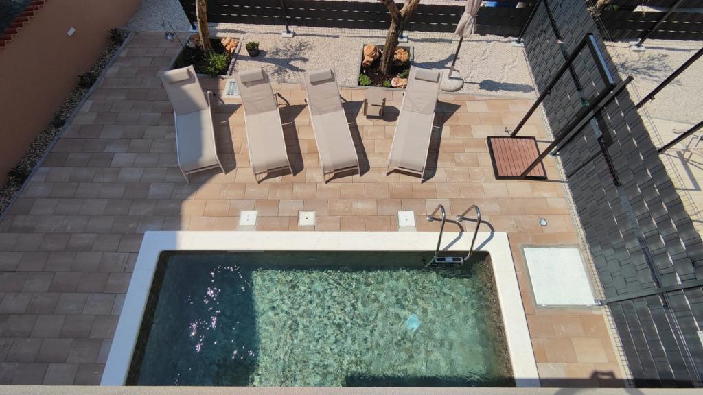 Newly built two-storey holiday house with swimming pool and two separate residential units (ground floor and first floor). Each residential unit is 90 square meters and is equipped with 3 bedrooms, kitchen, bathroom, terrace and living room. Parking is provided.