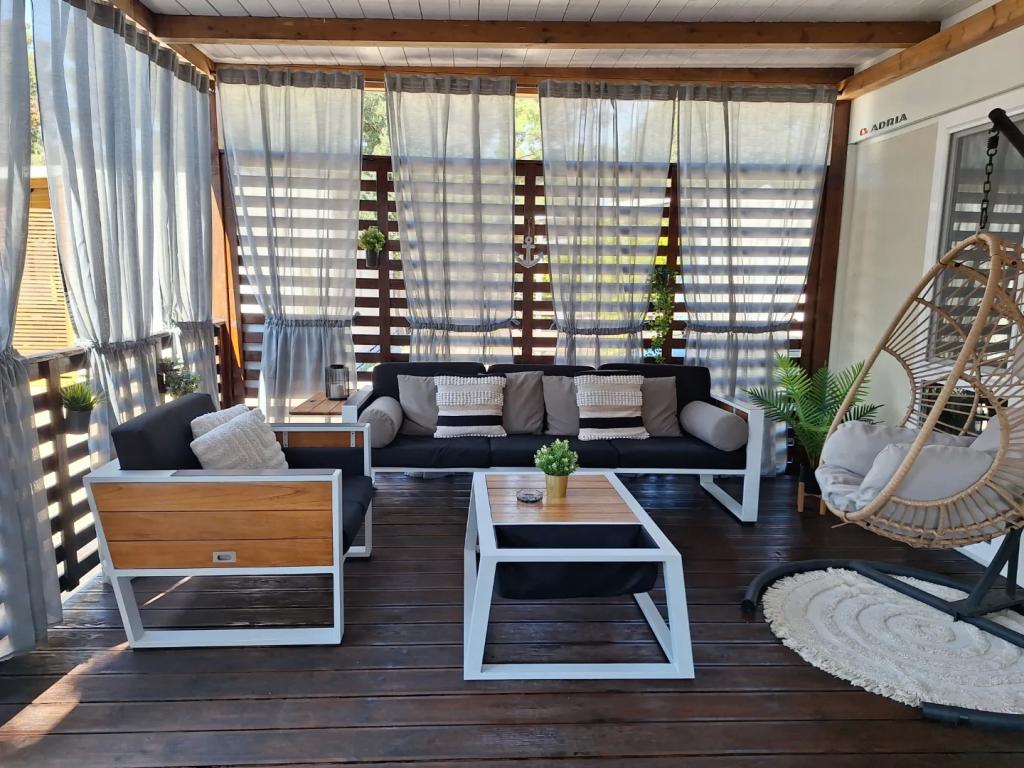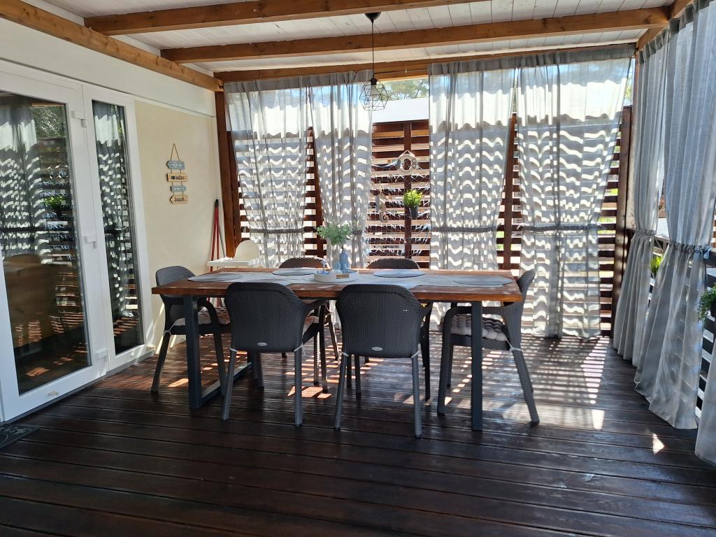 The house contains Blue Lagoon (Camping Park Soline, Biograd na moru) 2 bedrooms, Kitchen (fully equipped, kettle, hot air hair dryer, blender, hand mixer, complete dishes and grill equipment, microwave oven with the option of longer baking, toaster, Dolce Gusto coffee machine...), Dining room and living room, Bathroom, Covered fully equipped terrace 32m2, Baby package (highchair and travel cot for children up to 3 years, Iron and ironing board, Hair dryer, Towels and linen, TV SAT WIFI Air conditioning Parking space next to the house Gas grill Solar shower... Mobile home Blue Wave (Oaza Lučica, Drage) 2 bedrooms 2 bathrooms (hair dryer 2x) Dining room and living room Fully equipped kitchen (Microwave oven, toaster, stove, blender, coffee machine, complete dishes and cutlery...) Covered fully equipped terrace 34m2 Gas grill Solar shower Parking space next to the house TV SAT WIFI Air conditioning Baby package (Highchair and travel cot for children up to 3 years old)