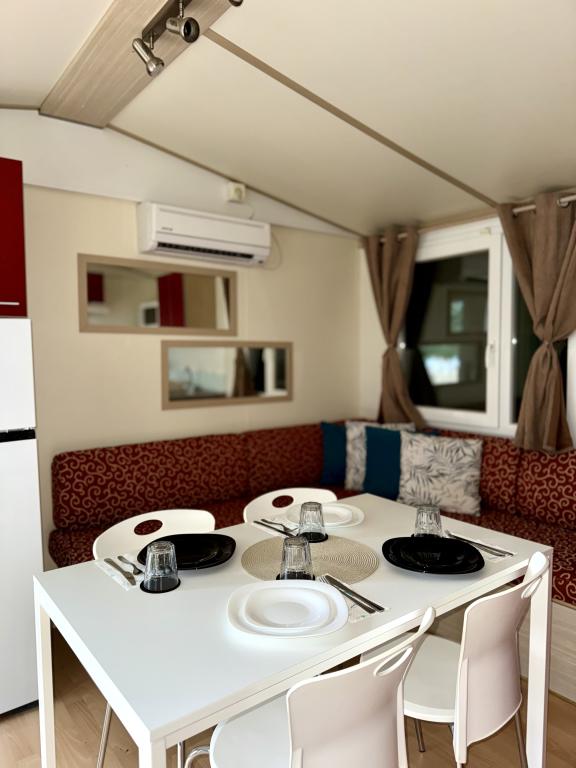 Mobile home Bonaca is located within the Bakija campsite, 40m from the sea, with easy access to the beach. Not far from Soline beach, 2-3 minutes walk, 1 minute walk to the Studenac market, and 7-8 minutes walk to the center. Fully equipped with a garden, kitchen, comfortable living room. Parking! Own outdoor grill within the house and its own outdoor shower. The facility is for 4 people, 2 bedrooms, 2 bathrooms. Spacious terrace, perfect for a pleasant stay with a view of the sea and beautiful sunsets.