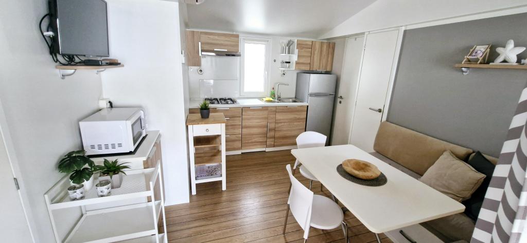Mobile Home Korina is located in Biograd na Moru, 200 metres from Soline Beach and 750 metres from Dražica Beach. Guests benefit from a children's playground and a 24-hour front desk. This beachfront property offers access to a patio, free private parking and free WiFi. The apartment has 2 bedrooms (one with a double bed and the other with 3 beds), a living room with a sofa bed, and a baby cot if needed. A flat-screen TV with satellite channels, an equipped kitchenette with a fridge and a dishwasher, and 2 bathrooms with a shower and an outdoor shower. Towels and bed linen are available in this property. Guests at the apartment can use the barbecue facilities. Popular points of interest near the accommodation include Lumbrak Beach, Biograd na Moru Heritage Museum and Marina Kornati, and Dalmaland Water Park. The nearest airport is Zadar Airport, 20 km from Mobile Home Korina
