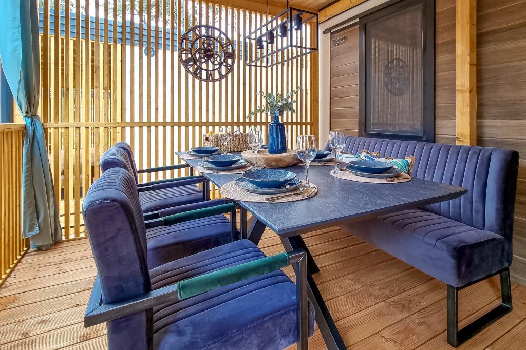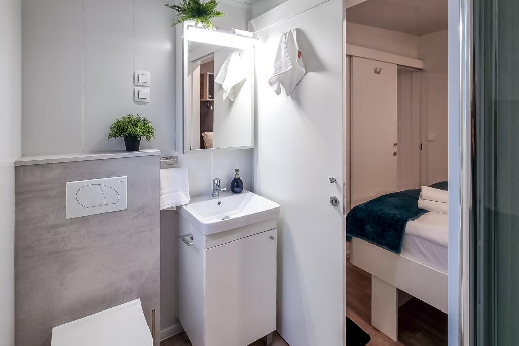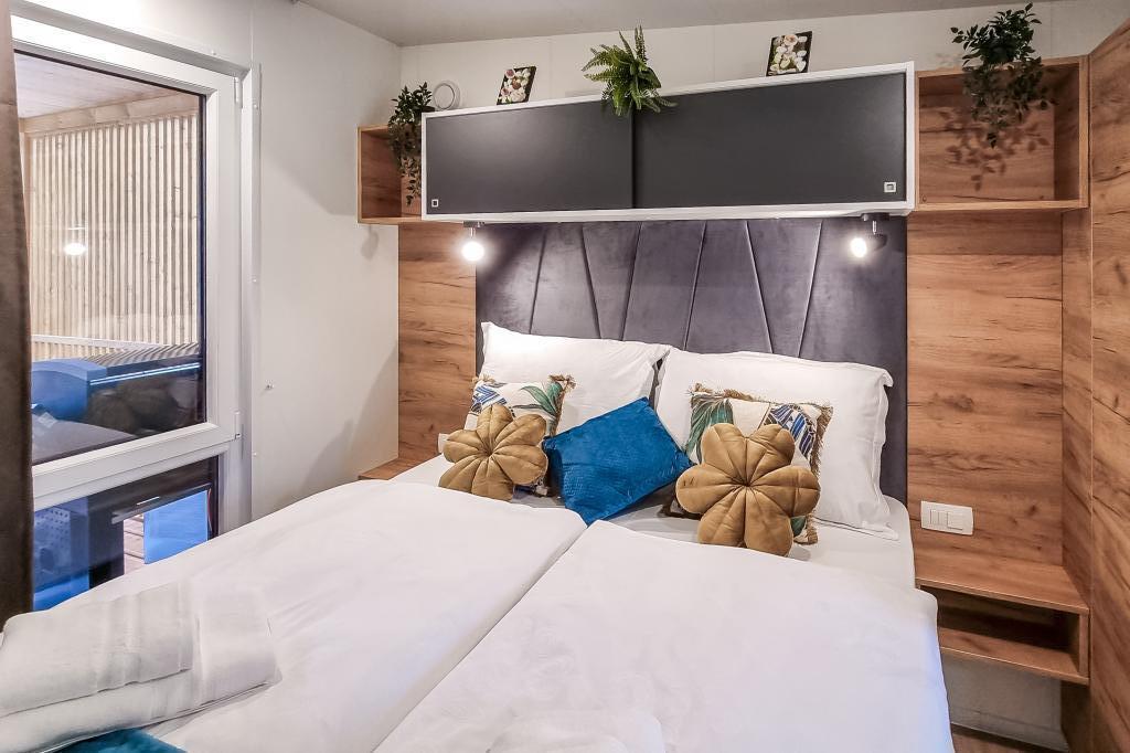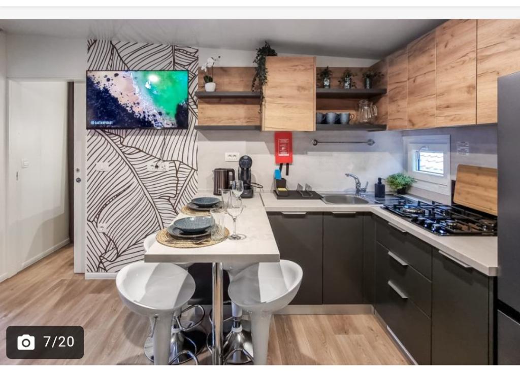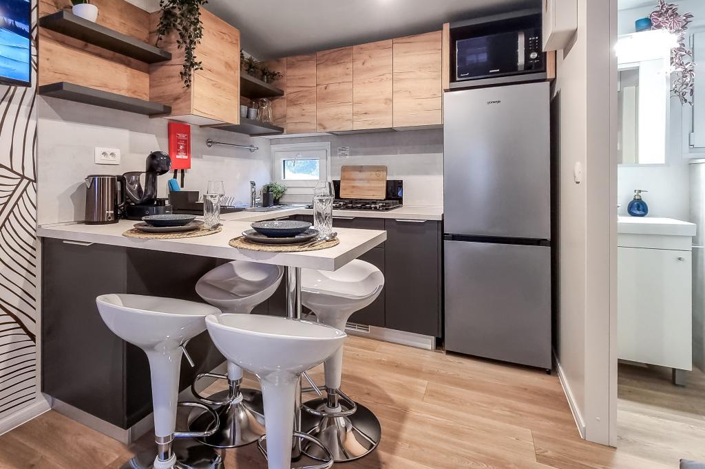 Our modernly equipped mobile home offers comfortable accommodation for up to 6 people, with 2 spacious bedrooms, a living room with a sofa bed and 2 bathrooms. Enjoy the large covered terrace equipped with a dining area and an outdoor living room, ideal for long evening gatherings. Here you can enjoy darts or relax in front of the big TV, while grilling on our large gas grill and outdoor stove. The covered terrace is surrounded by pine trees and a gentle breeze from the sea. On one side of the terrace there is a spacious dining area equipped with a comfortable sofa and even more comfortable armchairs, while on the other side, our outdoor living room offers a comfortable seating area where you can not only relax, but also enjoy your favorite TV shows on the huge TV with available satellite TV channels, Netflix and HBO GO. The house is located 3 minutes from the beautiful beach.
