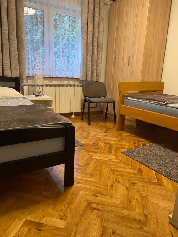 The apartment is in a private house with a separate entrance. It is located on the ground floor and can comfortably accommodate up to 4 people. The parking space is in front of the apartment and is free of charge. In approx. 50 m2 there are: two bedrooms (two separate 90x200 cm beds in one bedroom and a double bed 160x200 cm in the second room), a living room with a sofa bed, a dining room with a fully equipped kitchen, a bathroom with a shower and a washing machine and terrace. There is air conditioning and a TV in the living room, and free Wi-Fi is available throughout the apartment.