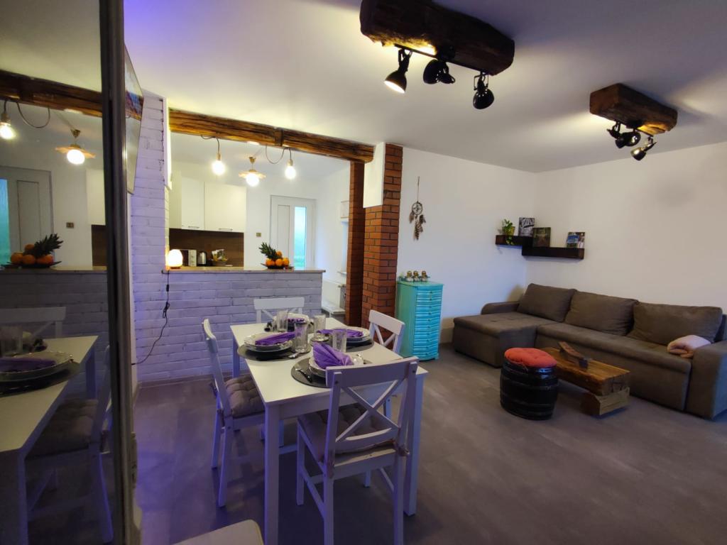 The Golden Hill holiday resort with apartments Vis is located in the village of Šandrovac in the peaceful Bilogora. The apartment was named after the highest point of Bilogora hill Vis, which is located on the property itself. The place exudes peace and quiet and is ideal for rest and regeneration. The accommodation itself offers a beautiful landscape with a view of Papuk. The apartment is fully decorated and modernly equipped. Guests have absolute privacy and can use the entire property, which contains; garden 1700 m2, orchard, organic vegetable garden, children's playground with a house in the treetop, barbecue and many other sports equipment. An ideal place for people who love nature because it is surrounded by beautiful oak and beech forests.