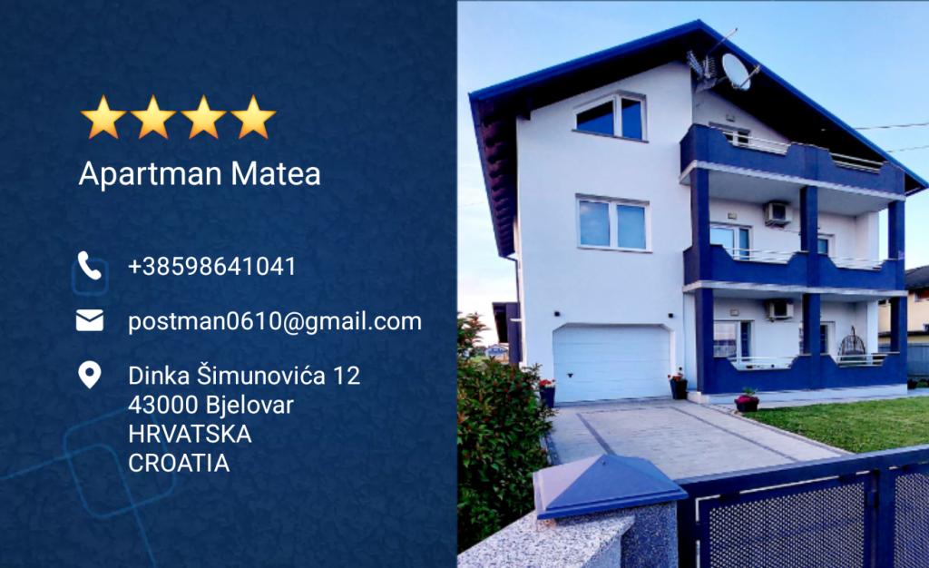 Read more Accommodation unitsYou can book a stay in the Matea apartment via mobile phone (SMS, Whatsapp, Viber) or by email. You can pay for the apartment reservation via bank transfer or by agreement, the entire amount upon arrival at the apartment in cash. Departure time from the apartment is until 12:00 or by agreement, and arrival at the apartment from 14:00 or by agreement. Flexible arrival and departure time to or from the apartment. If you are coming by public transport by bus or train to Bjelovar, we are ready to pick you up and return you on the day of departure without any additional fees or costs.