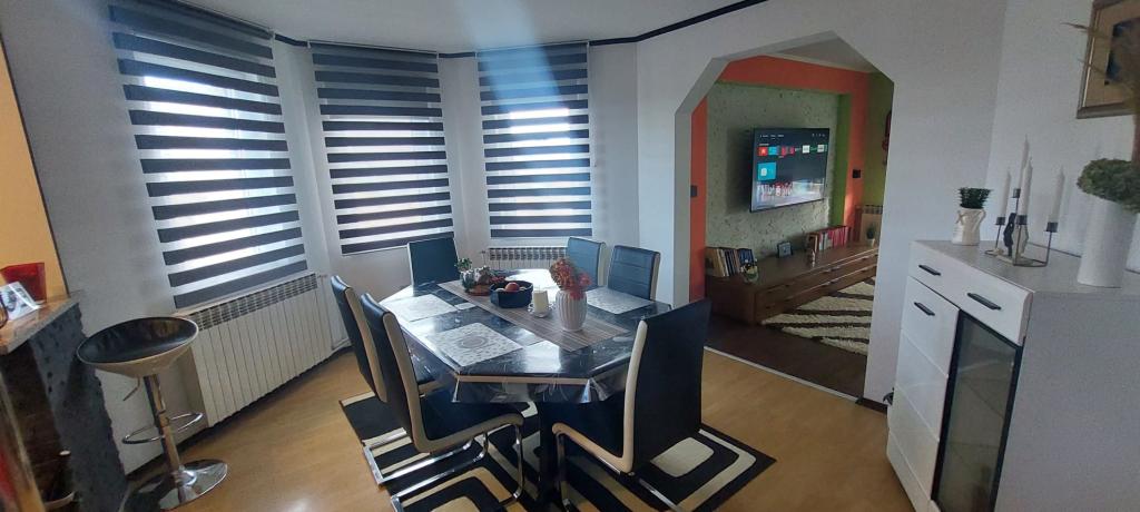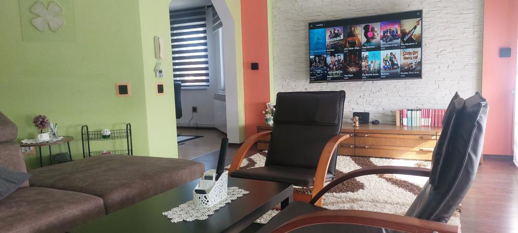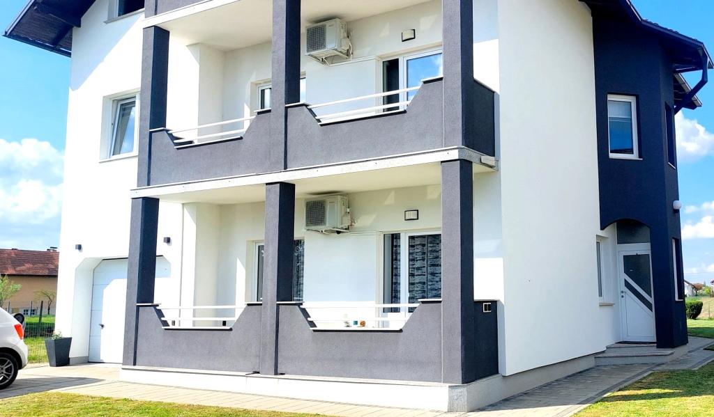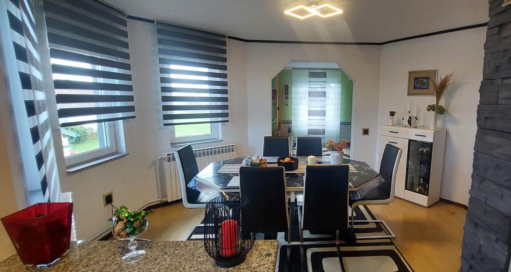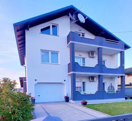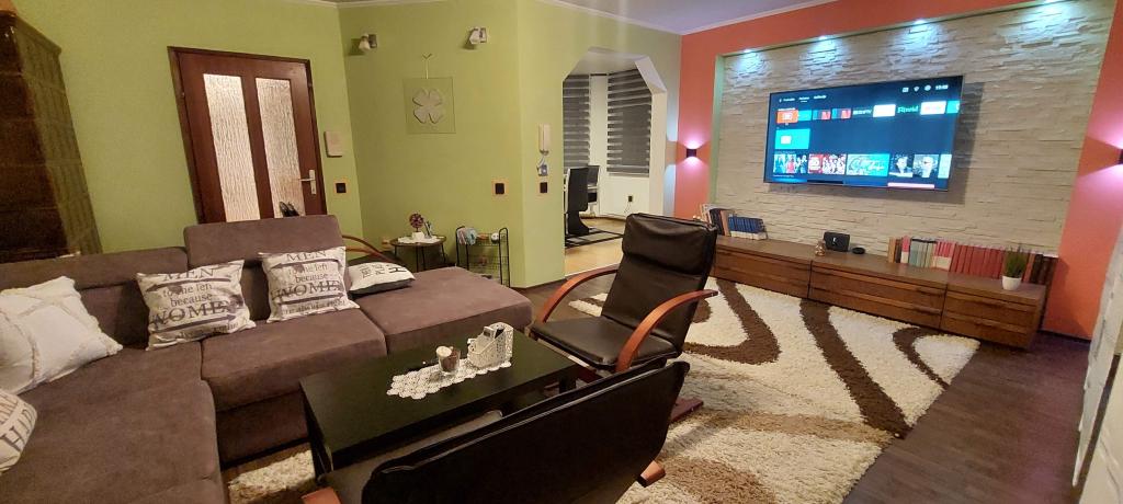 Come and enjoy a wonderful vacation in our modernly decorated Apartment Matea located in the quiet and charming Bjelovar! This spacious 70 square meter apartment can accommodate up to 4 guests and is located in a quiet and peaceful neighborhood (street) 2km from the city center, without traffic and car noise. The apartment consists of 1 bedroom, bathroom, kitchen, living room, dining room, balcony and covered terrace. The property includes parking for 3-4 cars and the possibility of using a garage, a covered terrace with a grill for 10 people, a playground for children and a fenced garden full of greenery of 700m2.