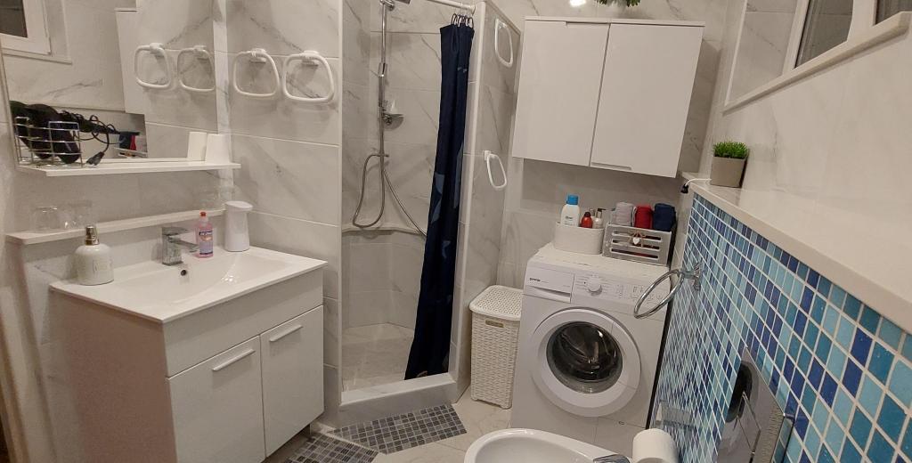 Apartment Matea offers numerous facilities that will make your stay unforgettable. Relax on the balcony overlooking the surroundings or enjoy shared moments in the garden with a barbecue. 3-4 parking spaces are provided for your cars and the possibility of using the garage. The spacious terrace is perfect for relaxation, and the interior of the apartment exudes warmth thanks to the fireplace. The comfort and quality of the stay are ensured by WiFi, smart TV, IPTV-Netflix, air conditioning, central heating, washing machine, iron, hairdryer, dishes, baby cot and the possibility of long-term rental. The apartment provides a low-allergy environment. Bicycles are also available for exploring the beautiful surroundings. A laundry area with a washing machine ensures convenience during your stay. The bedroom with a comfortable bed, smart TV and elegant furniture provides the perfect refuge after a busy day. Don't miss the opportunity for an unforgettable vacation in Apartment Matea. Book your stay and enjoy this beautiful place! Welcome