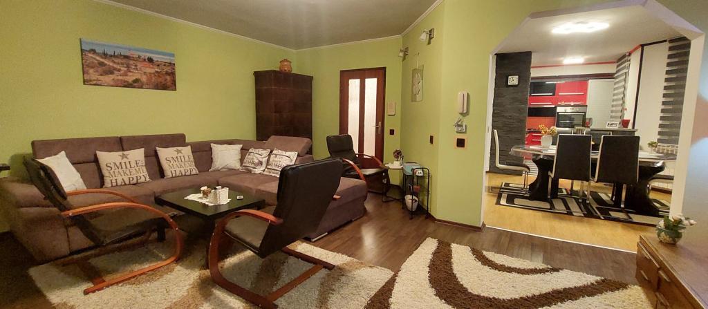 All recommendations for the apartment. Spacious and warm, comfortable and modernly furnished, the entire floor available. The hosts are approachable and friendly and always at hand at all times. The kitchen is equipped with all the utensils needed for cooking, including recipes. Enough space for pets (we had two). We enjoyed relaxing the entire time of our stay because the street is quiet and without traffic. Thanks to the hosts.