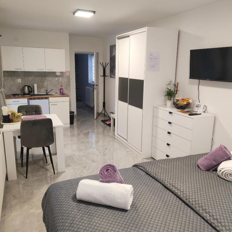 Read more Accommodation unitsPayment is made in cash upon entering the apartment. Pets are not allowed! Check-in is from 4pm to 10pm and check-out is by 11am. Please check the availability of the apartment by calling or texting as there is a possibility that they are sold out on other portals!!!