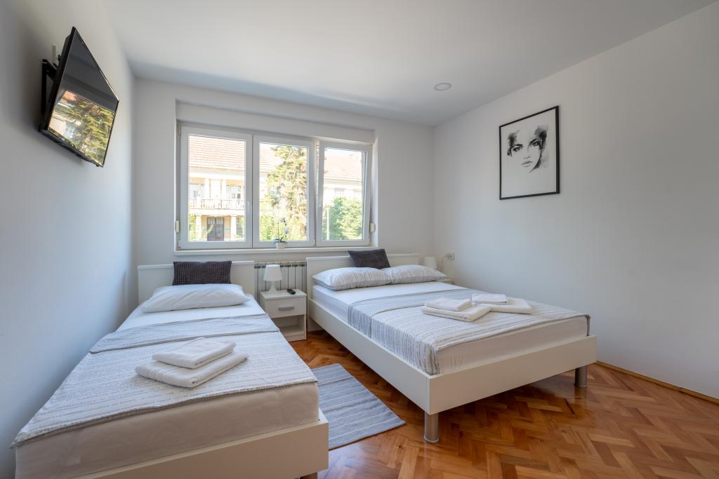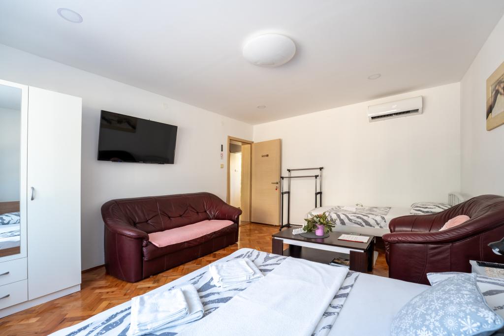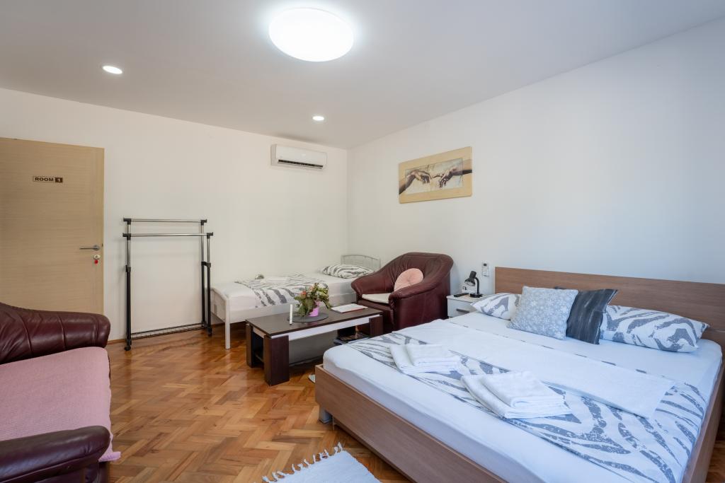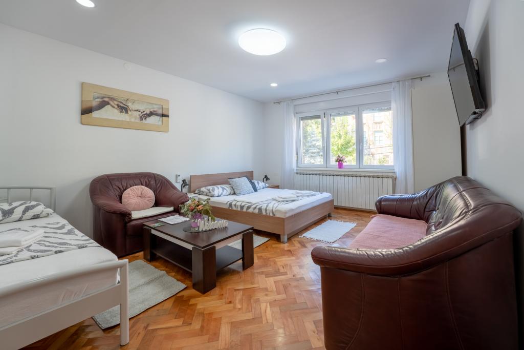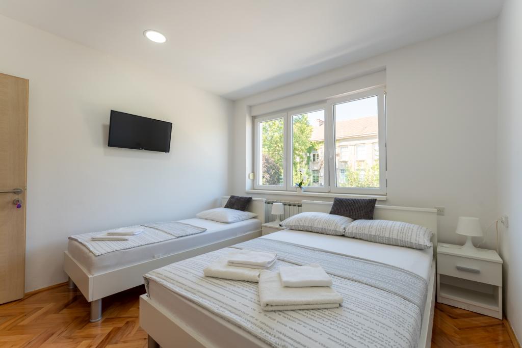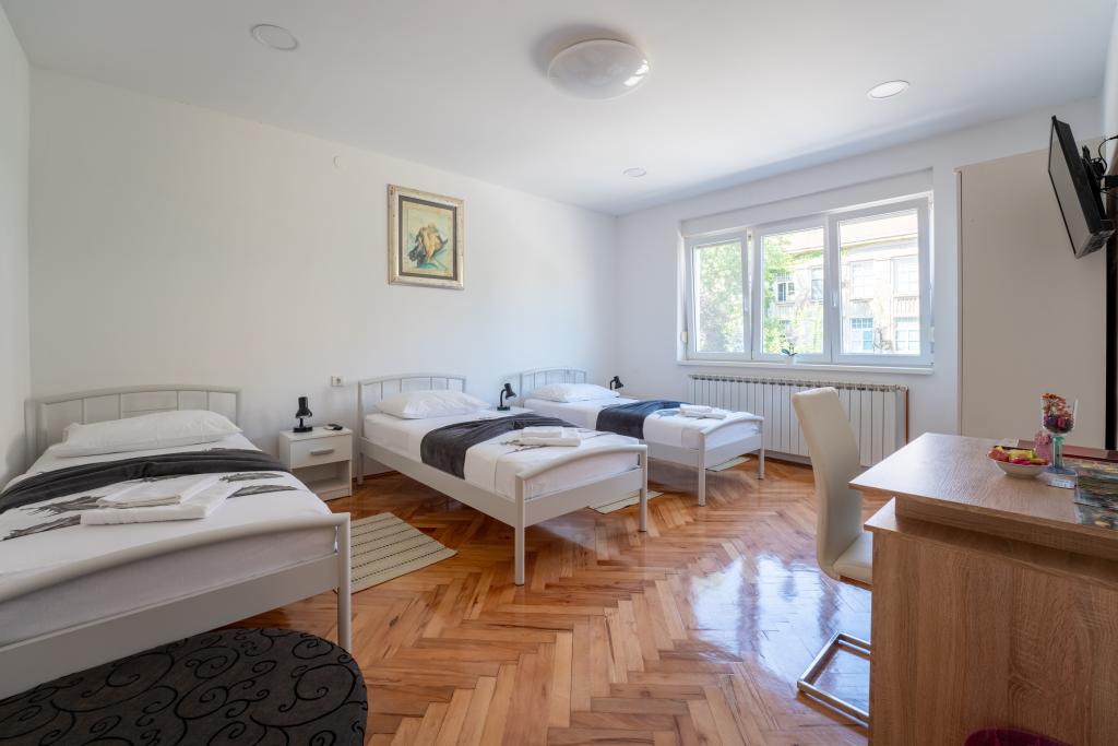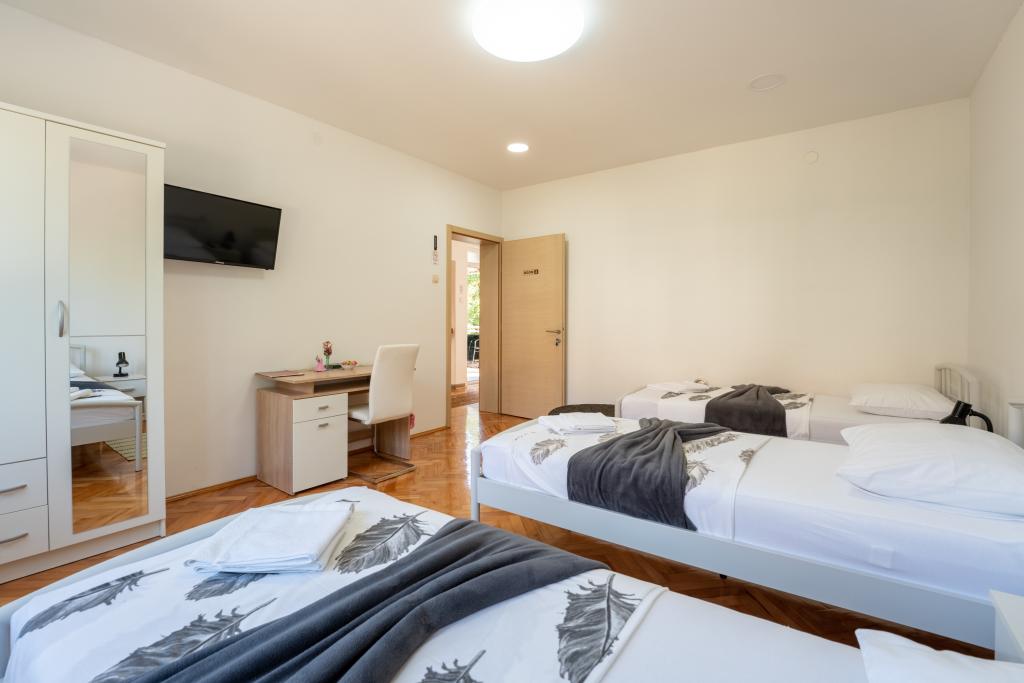 Rooms Matic A.Mihanovića 13C, fully and modernly equipped rooms in the center of Bjelovar, across from the hospital. Free WIFI, FREE parking, free barbecue, first city zone. Each room has 3 beds and a separate bathroom with toilet, kitchen, LED flat screen TV and all rooms have LED lighting. Free WIFI internet access. Bathrooms are equipped with a washing machine. The house has a free private open parking lot. The rooms are equipped with air conditioning that is not charged. Heated by central radiator heating and cooled by air conditioning. Free use of the grill, we have a gazebo for our guests with the possibility of using 9 chairs and a table. The facility is equipped with a jacuzzi and infrared sauna. Use by special agreement and additional payment. We are registered as a bike & bad facility and we have 5 bicycles and 3 scooters available. If you arrive in Bjelovar by public transport, we will pick you up and drop you off at our facility for free. Welcome!