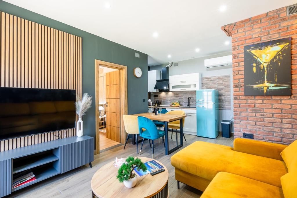 Welcome to a brand new, modernly decorated apartment in the city center. The ideal location allows you to forget about the car, because all the main attractions are just a few minutes away. The apartment is equipped with everything you need for a comfortable stay: air conditioning, Wi-Fi, smart TV, comfortable bed, modern kitchen, bathroom and terrace. Book your stay and feel at home.