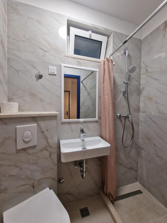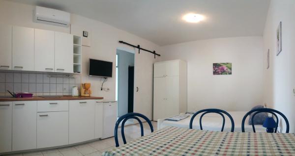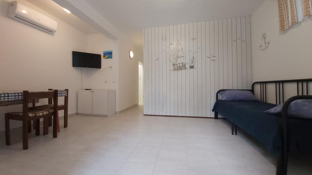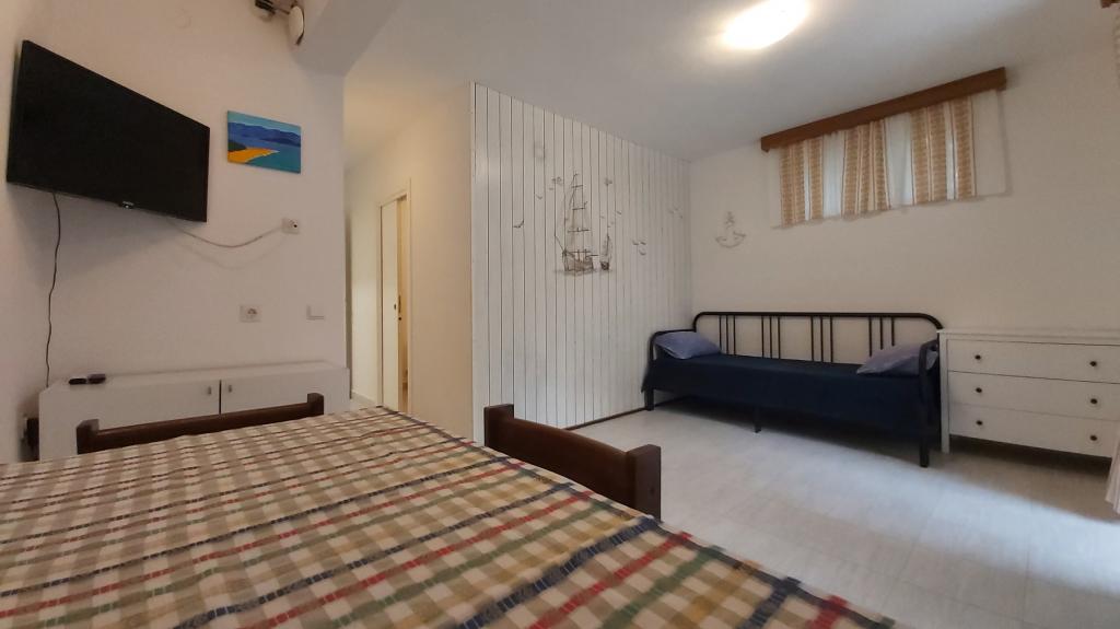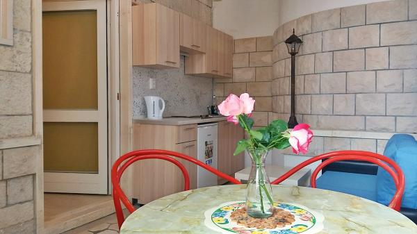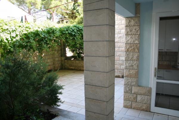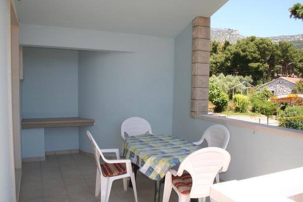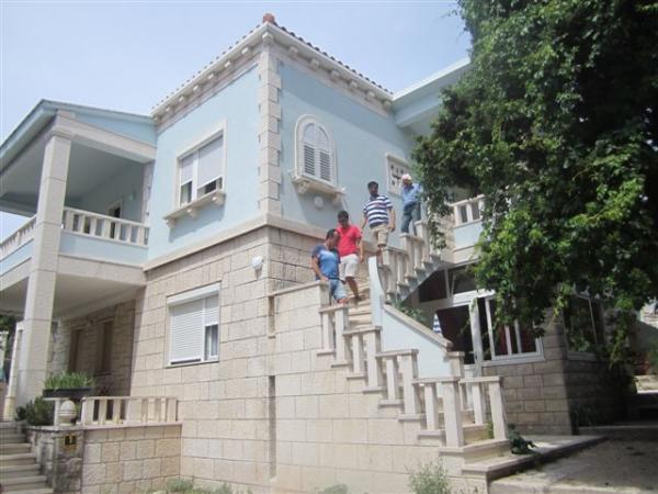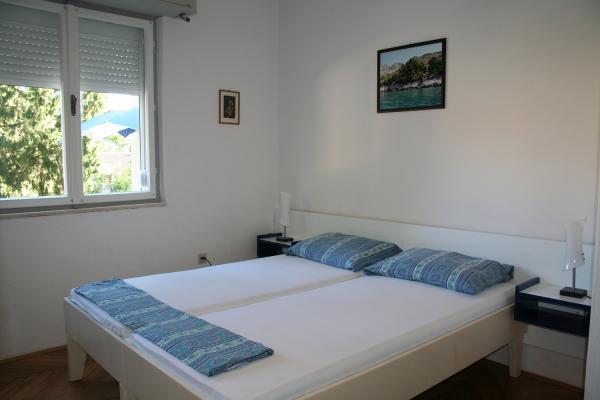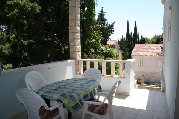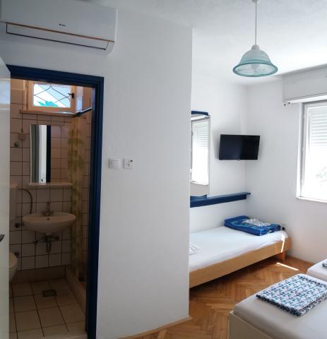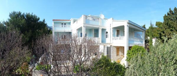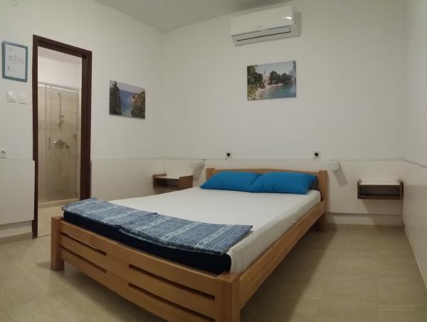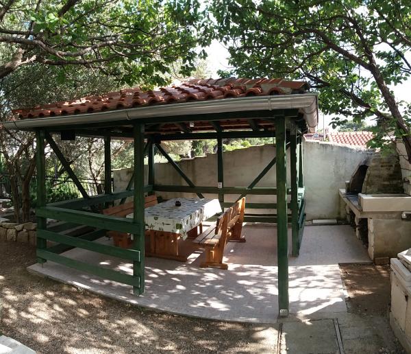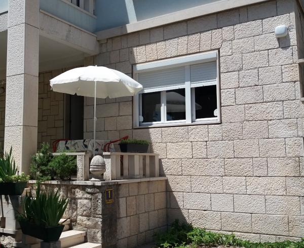 Apartments Marinović in Bol on Brač are located above the promenade (2nd row of houses) towards Zlatni Rat. The house is located 50m from the sea and the nearest beach. All apartments have air conditioning, TV, wifi, kitchen, bathroom. There is a gazebo with a fireplace in the yard. Ideal for families with children, due to the proximity of beaches and amenities (aquapark, playground, windsurfing, kitesurfing and diving schools...).