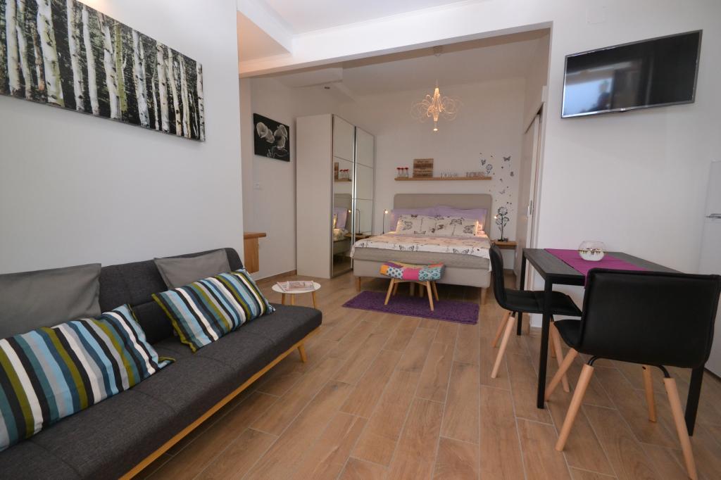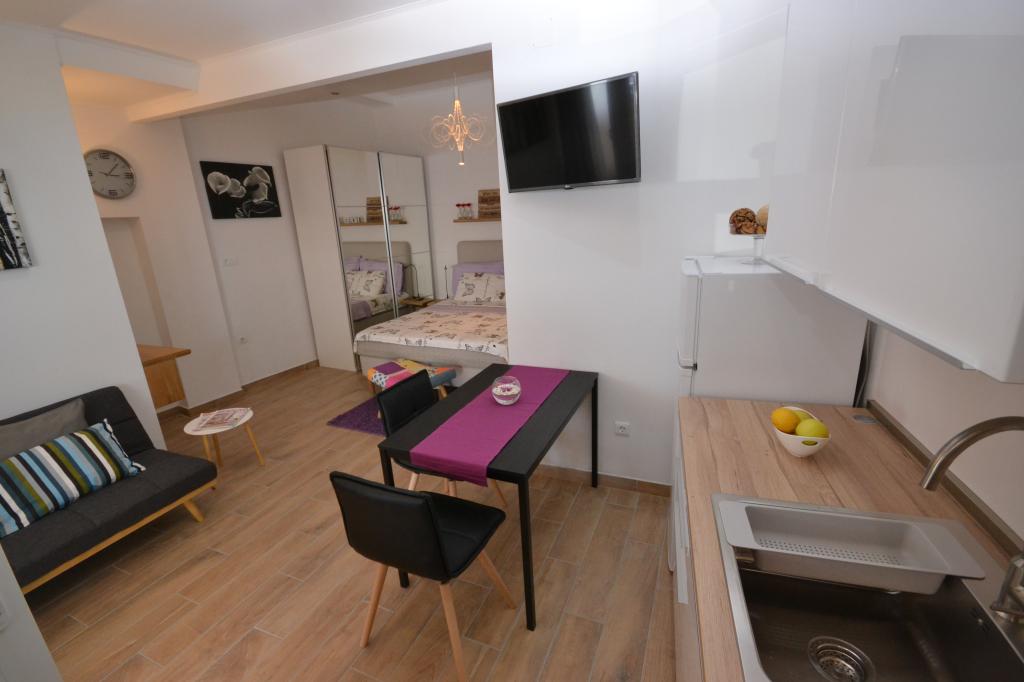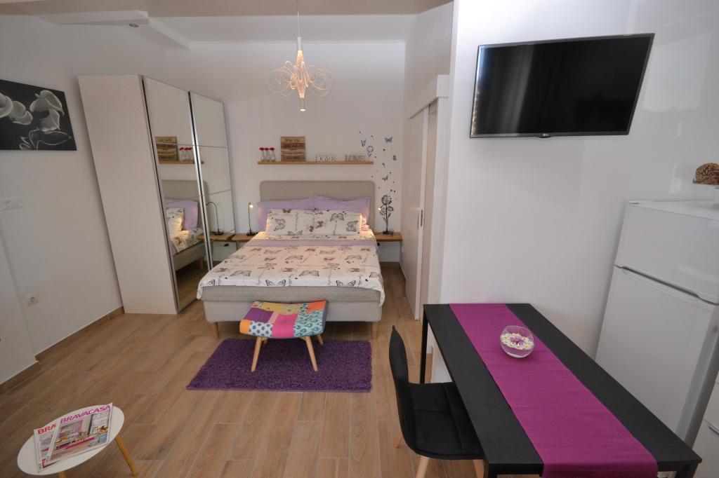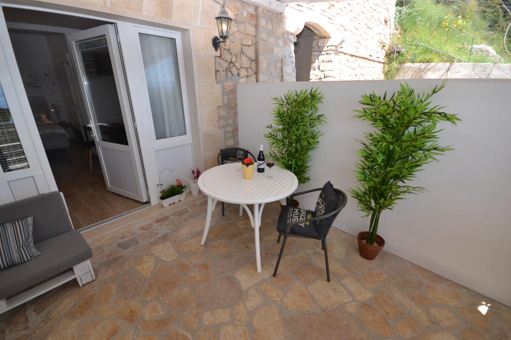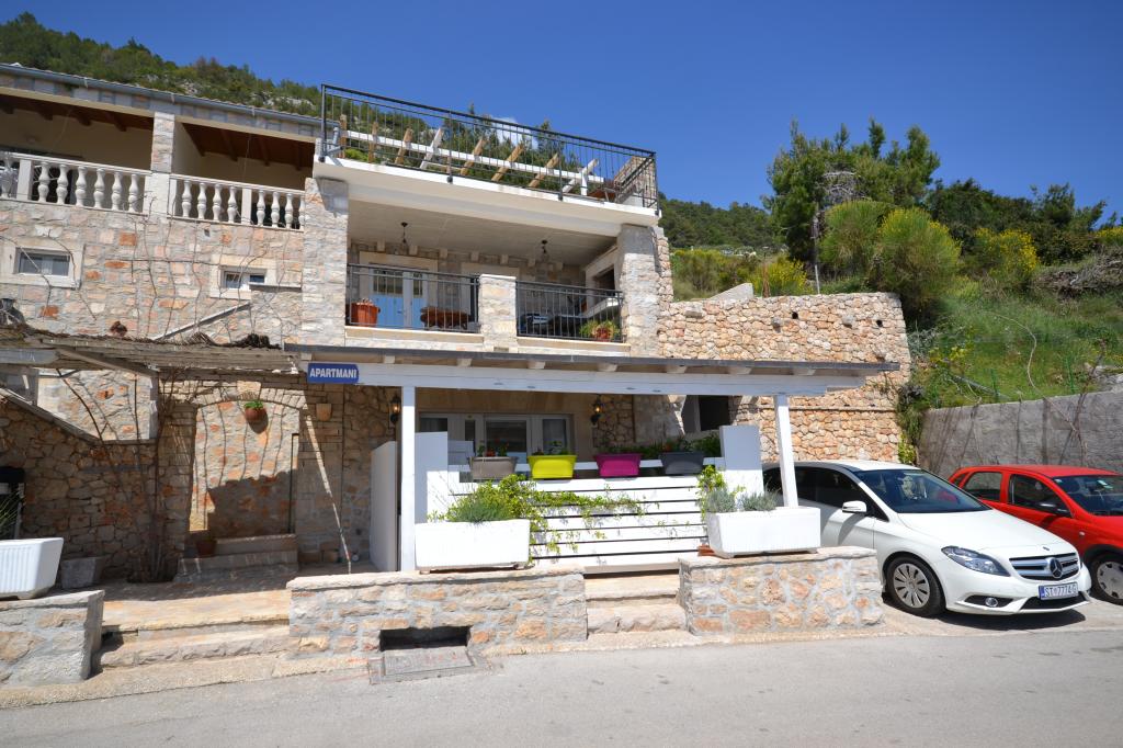 Fully furnished apartments in a small village five kilometers from Bol, with magnificent views of the Brač-Hvar channel, five minutes walk from the beautiful sandy beach in the shade of ancient pines.