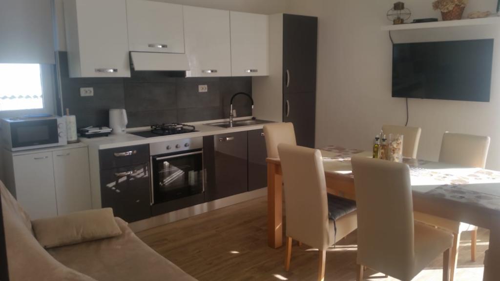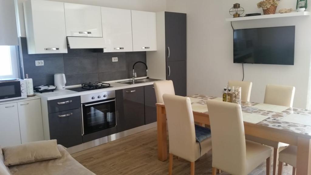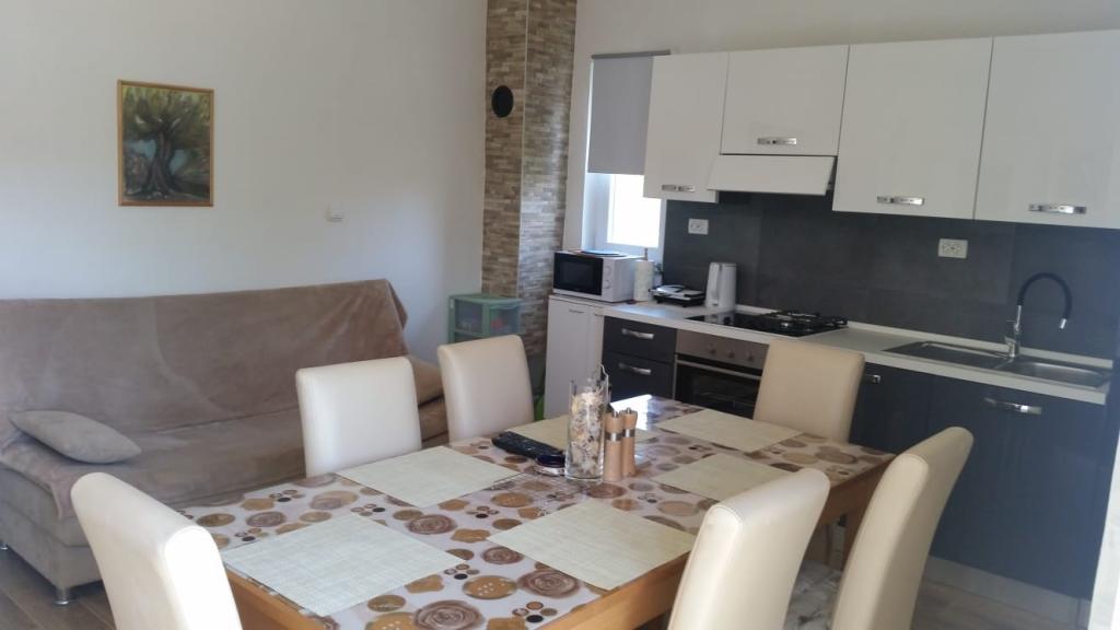The apartment is located in Brbinj on Dugi otok, 10 meters from the sea, on the 1st floor and has a terrace overlooking the sea and the sunset. Two restaurants are located near the apartment. The property is a 3-minute walk from the ferry port. The apartment consists of a kitchen with living room, three bedrooms, bathroom, additional toilet and terrace. The apartment is fully equipped and air conditioned. The kitchen is modern and new, and is equipped with a dishwasher, stove, oven, refrigerator with freezer and microwave. The dining room is spacious with a large dining table and sofa, and access to the terrace. In the spacious hall there is a large wall closet, a newly renovated bathroom with shower, and three bedrooms that are spacious and equipped. Possibility to use the covered barbecue in the garden. . You can swim right in front of the apartment. All other beautiful beaches of Dugi otok can be reached in 10-15 minutes by car. You can park in front of the house.