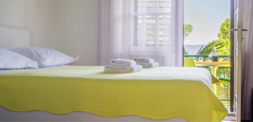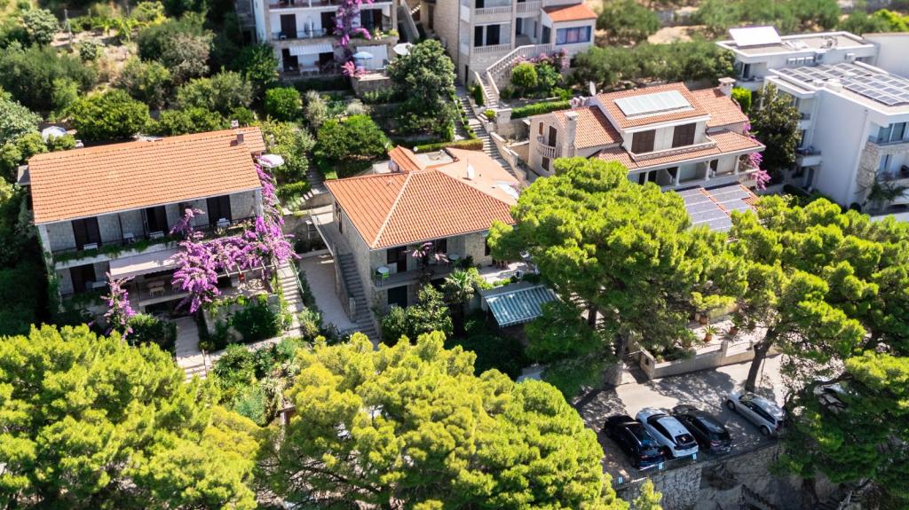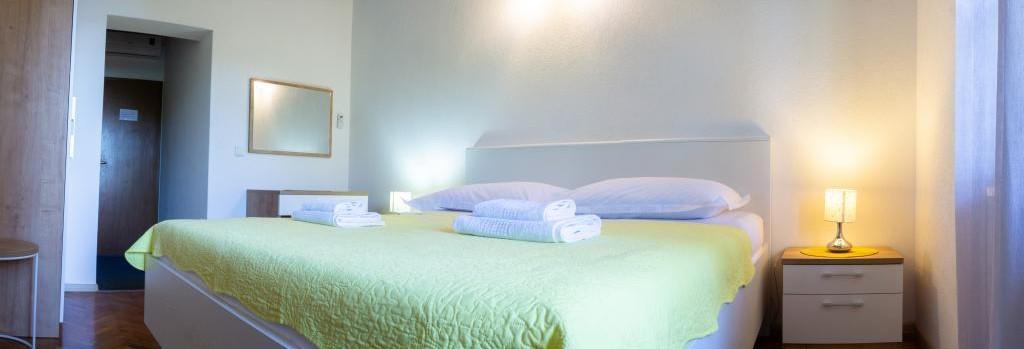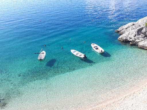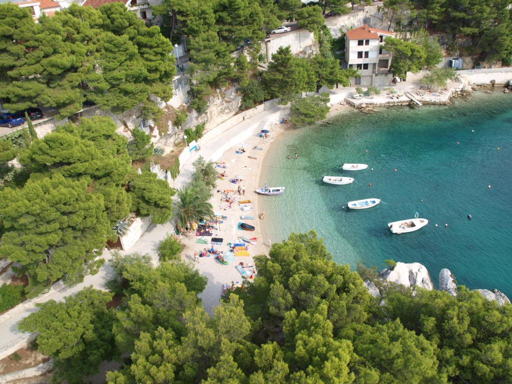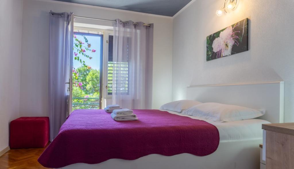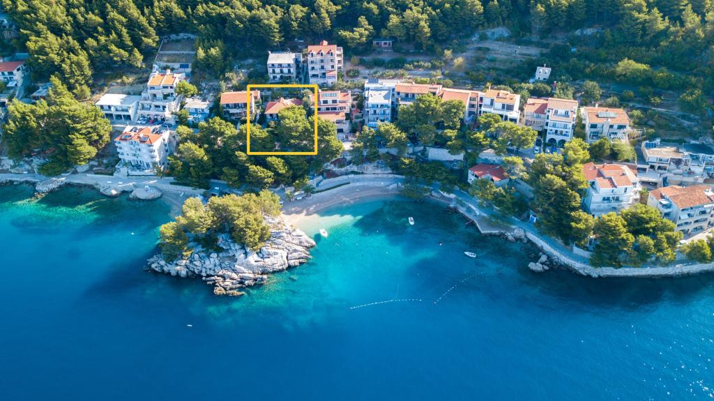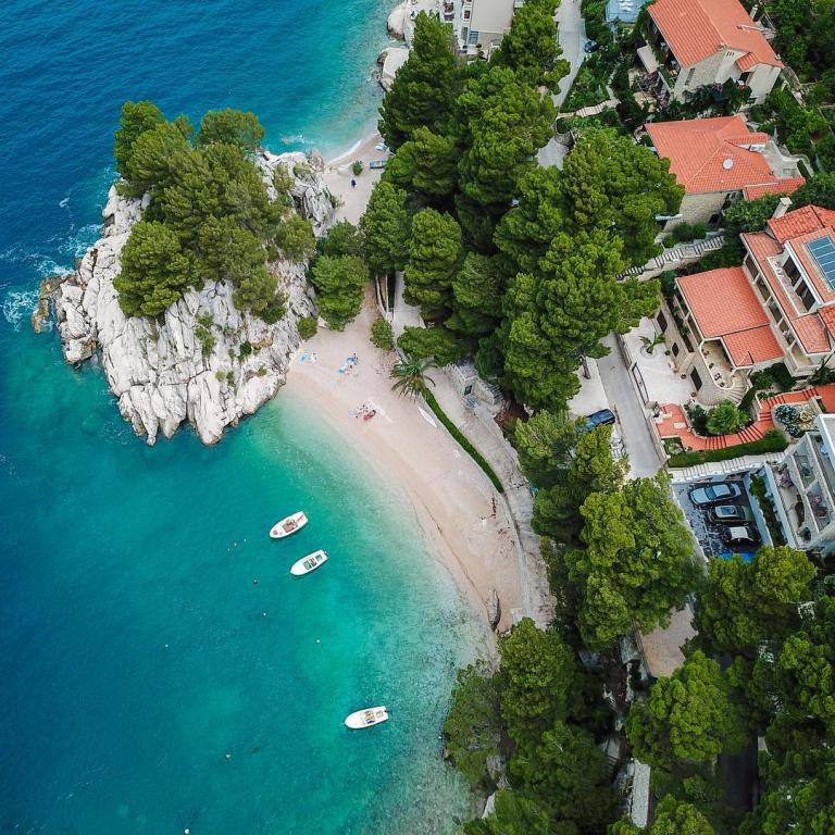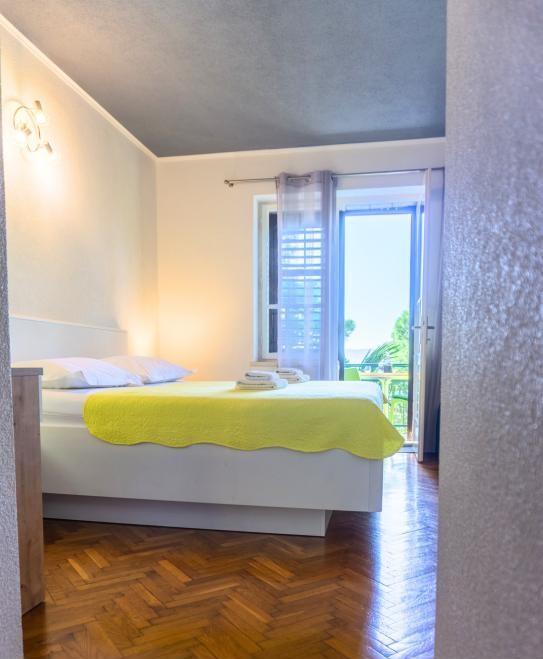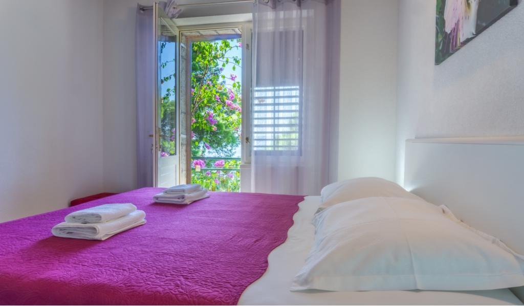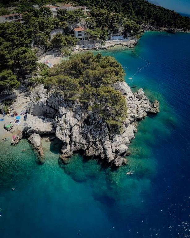 The apartment is located first row to the sea, right next to Podrače beach, one of the most famous beaches in Croatia. Brela Rock, the symbol of the entire Brela municipality, is just a two-minute walk from the accommodation, and right next to Brela Rock is Punta Rata beach, which has been proclaimed one of the most beautiful beaches in the world for years. The apartment itself consists of a large hall with two bedrooms with large double beds. Each room has its own bathroom and a balcony with a sea view. The apartment also has an equipped kitchen. Other amenities include air conditioning, satellite TV and WiFi. The apartment can accommodate up to 4 people.