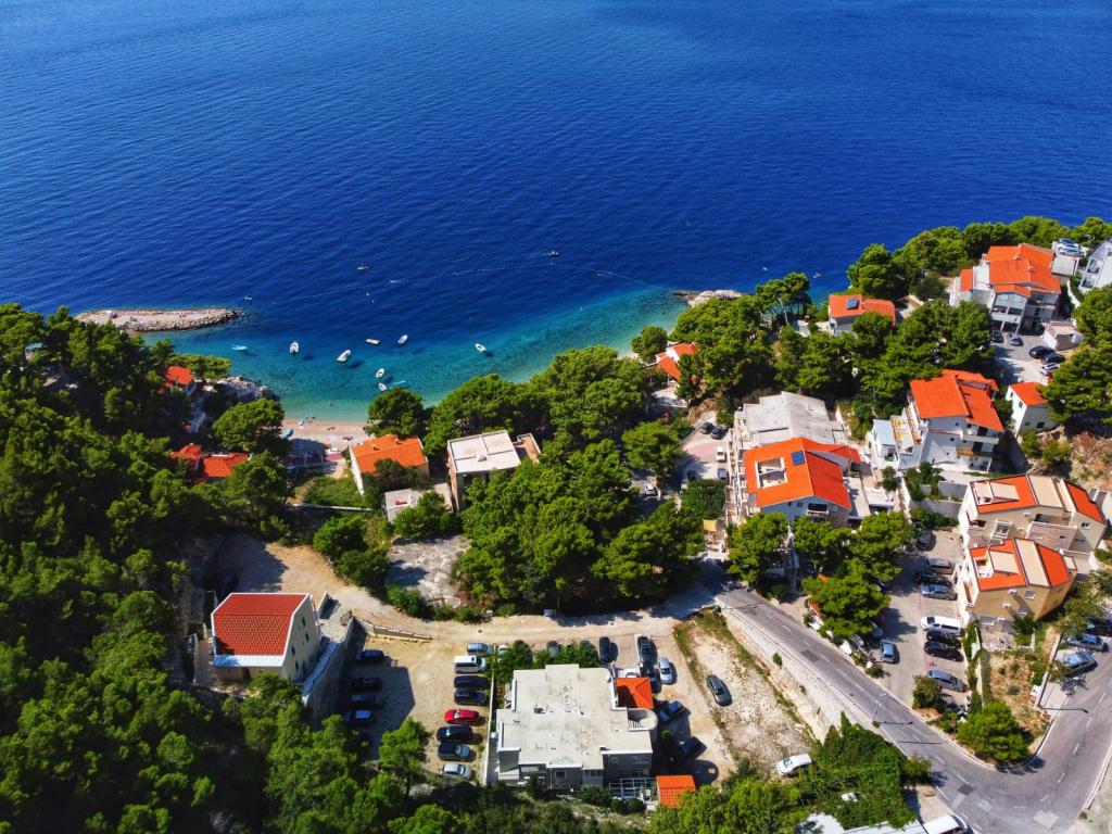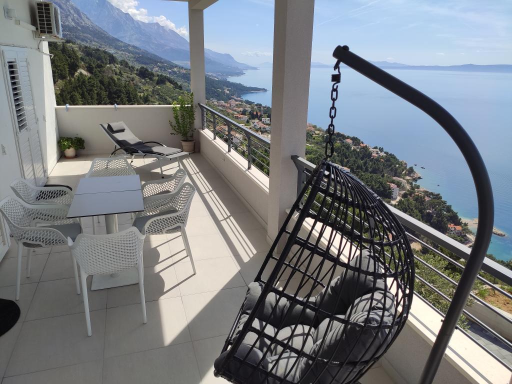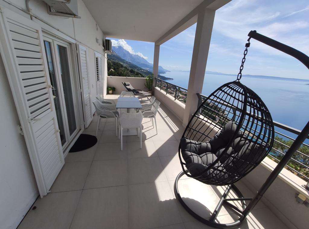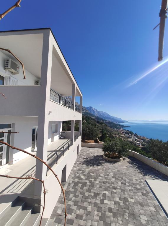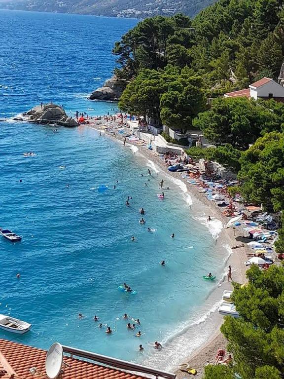 The house is located in the western part of Brela, on a hill with a beautiful view of the surrounding villages and islands. The apartment has two bedrooms, a living room, two bathrooms, a kitchen and a dining room, and a large balcony with a sea view. All rooms are air-conditioned with free internet and TV/Sat. There is a covered parking lot for your car in front of the house. We are 5 to 10 minutes away from beautiful beaches by car. Our guests have free secure parking 50 meters from Jakiruša beach (see pictures). We look forward to your arrival. We are at your disposal for any questions.