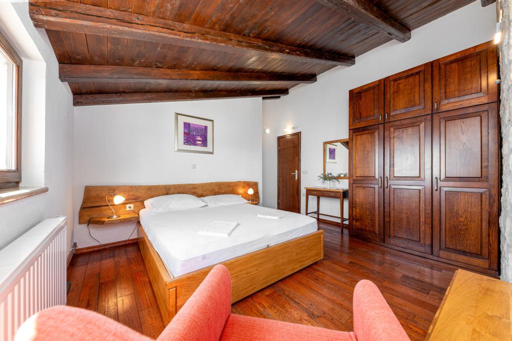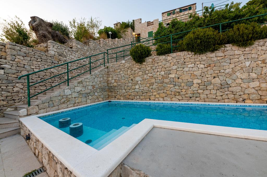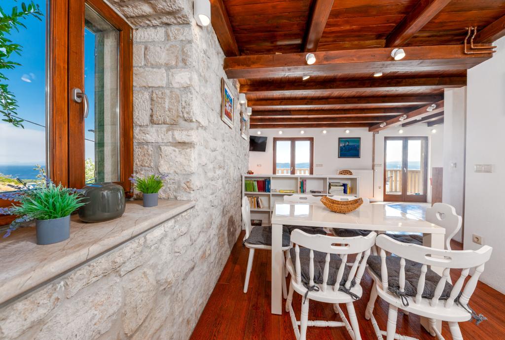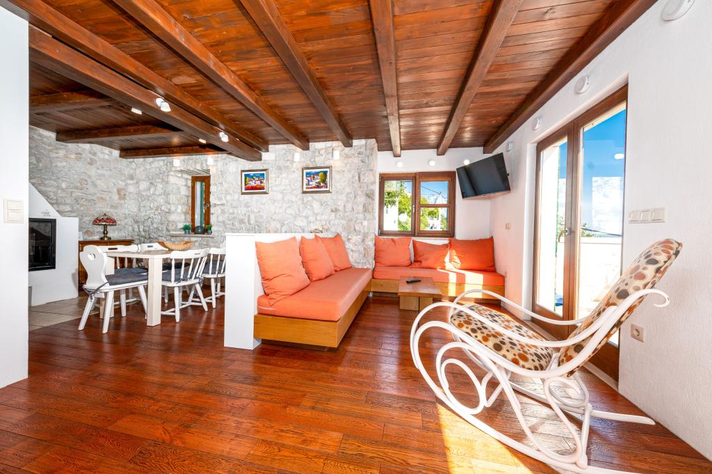 Welcome to our spacious and charming apartment located in a private house with a total of three apartments - an ideal choice for a peaceful and relaxing holiday in a true Dalmatian ambience. The 115 m² apartment offers everything you need for a pleasant stay. It consists of two comfortable bedrooms, a fully equipped kitchen connected to a spacious living room, two bathrooms (one of which has a hydromassage bathtub) and an additional separate toilet. Rustic decoration and carefully chosen details create a warm atmosphere and an authentic Dalmatian atmosphere. The house is located on a cascading terrain, and stairs lead to the shared swimming pool. The pool is located on a spacious terrace equipped with deck chairs and umbrellas, perfect for sunbathing and enjoying the view. Due to the stairs and the configuration of the terrain, the apartment is not suitable for people with disabilities or people with reduced mobility. Private parking is available right next to the house (which is a great advantage in the summer months). We look forward to your arrival!