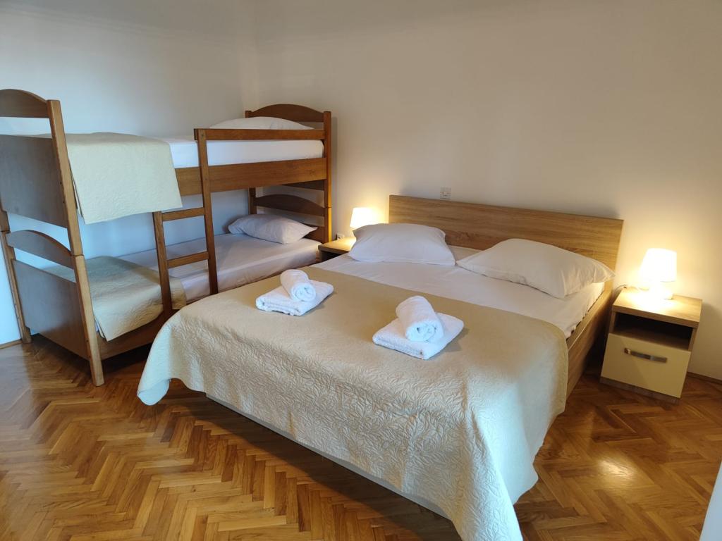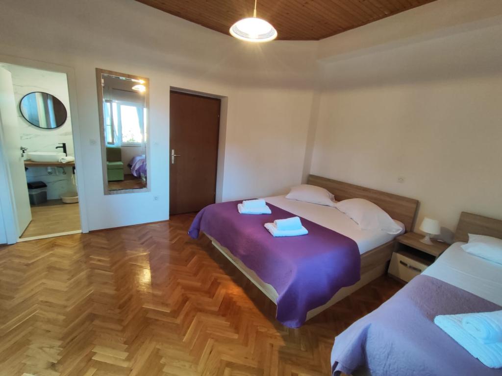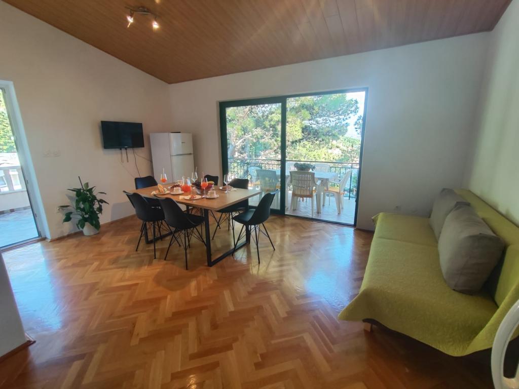 Our apartments are located in a quiet part of Brela, perfect for a family vacation and complete relaxation. Nestled among fragrant pine trees, they offer a stunning view of the crystal clear Adriatic Sea and Mount Biokovo. The apartments are modernly equipped. Each room has its own bathroom, balcony, air conditioning, and towels and bed linen are provided. A fully equipped kitchen (stove, refrigerator, complete dishes and cutlery) allows you to prepare meals in a comfortable home atmosphere. Each apartment has a spacious terrace, TV, WiFi, parking and the possibility of using a barbecue for unforgettable evenings by the sea. The house is located on a hill, only 100 meters from pebble beaches, ideal for swimming and sunbathing. Brela is known for its natural beauty, long promenade along the coast and the legendary Brela stone. In addition, there are numerous restaurants with local specialties, cafes by the sea and opportunities for various sports and recreational activities nearby, such as hiking, cycling and water sports. ️