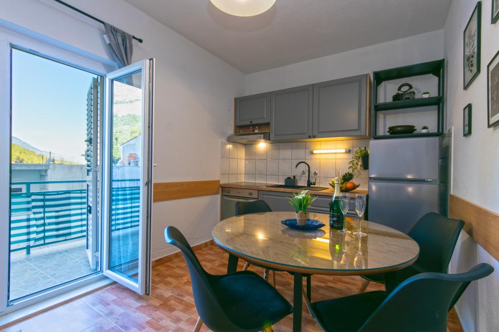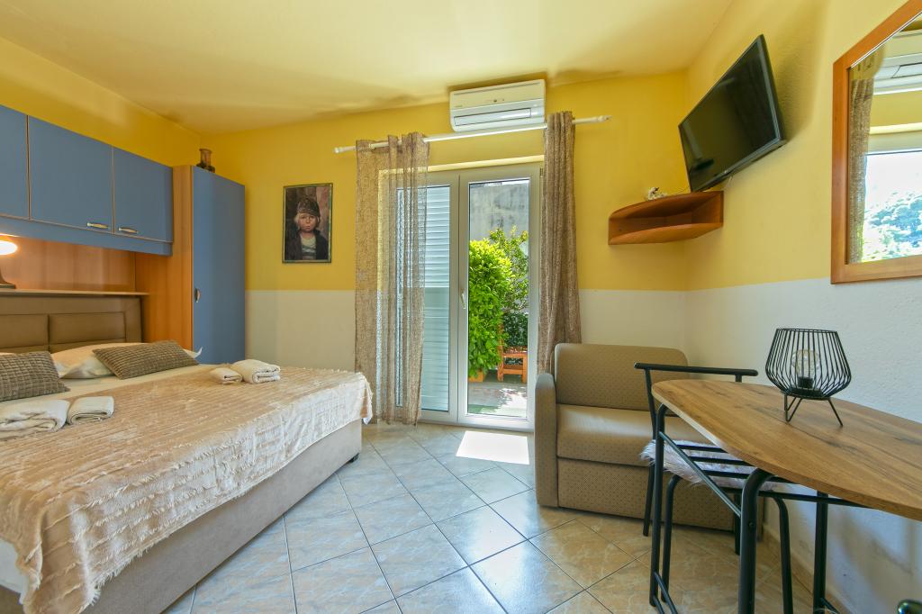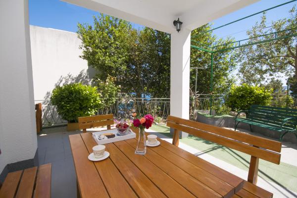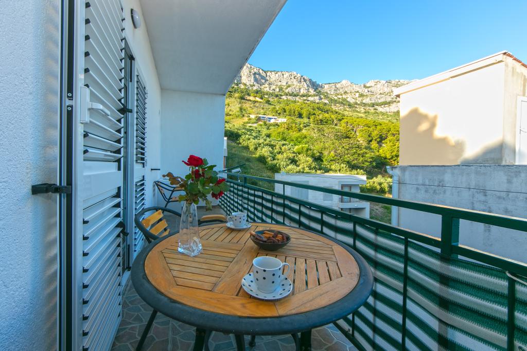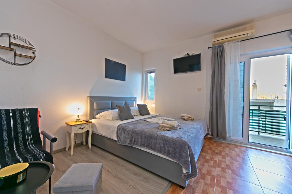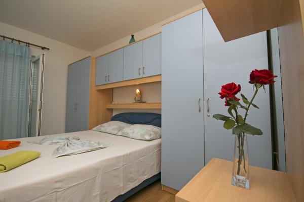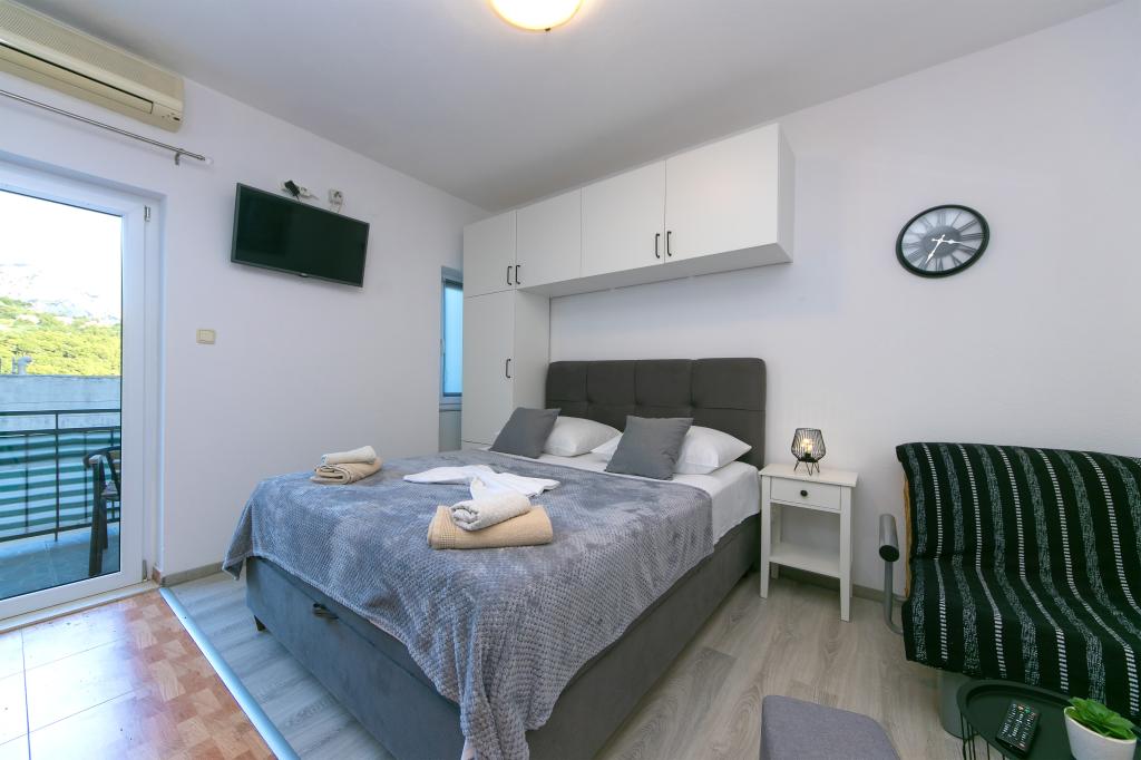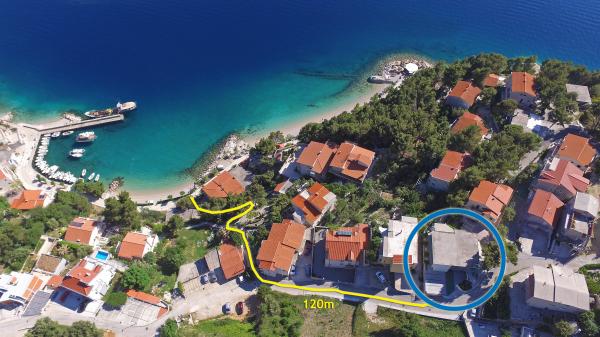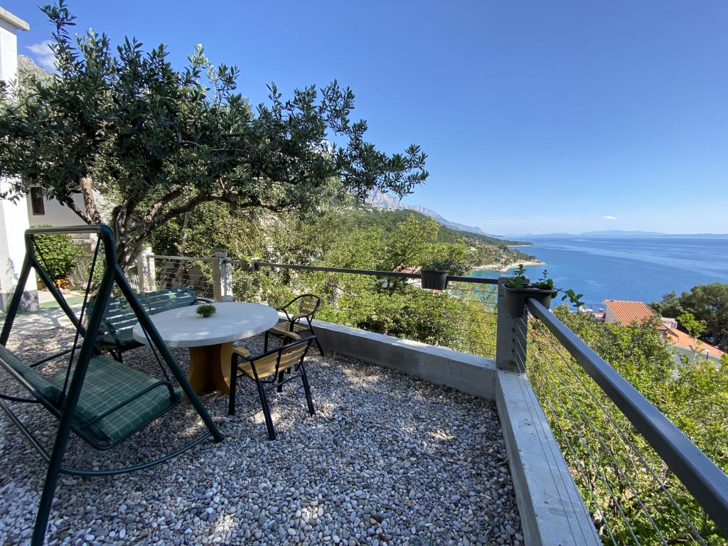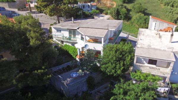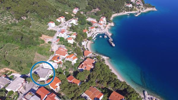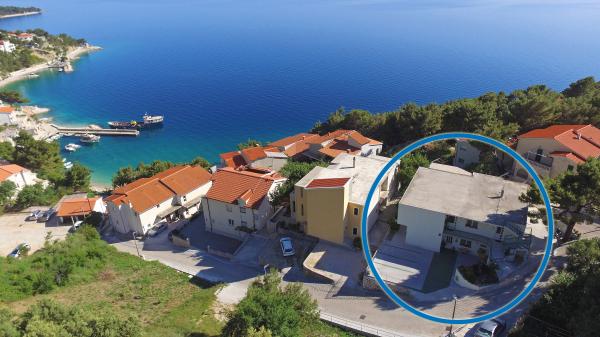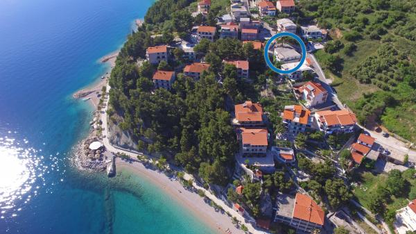 Apartments Hrvoje are located in an elevated position in the quiet part of Stomarica Street. Distance from the pebble beach is about 3 min. walk or 150 m. On one side of the house there is a view of the sea and the other has a view of the mountain Biokovo. The Jelčić family offer is quality and the guests can fully relax in the apartments and spend an unforgettable vacation. The apartments satisfy all the guests who want to spend a pleasant vacation. The accommodation offer includes apartments equipped with kitchen, bedroom, air conditioning, satellite TV, bathroom and balconies. Behind the house there is a garden terrace with tables where guests can relax while enjoying the peaceful atmosphere overlooking the sea. Also available is the use of an outdoor grill, but a friendly lady. Jelcic will be happy to help them. Parking is secured.