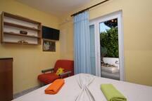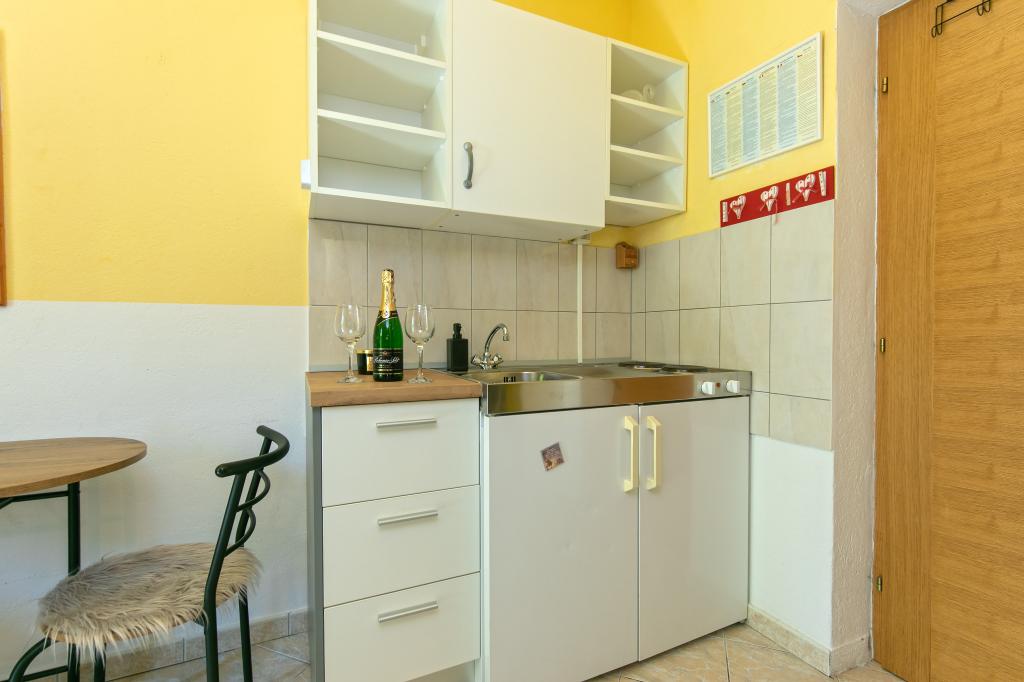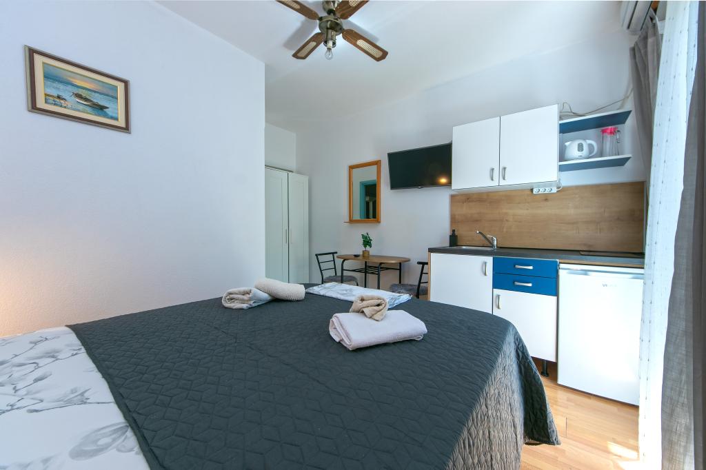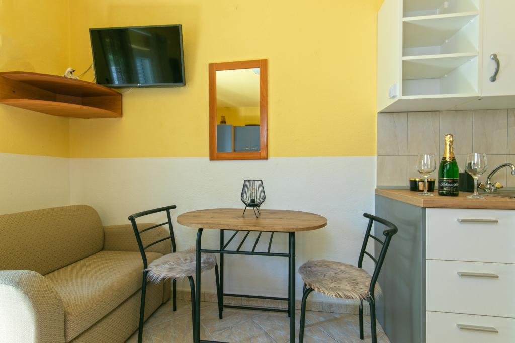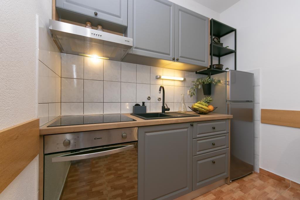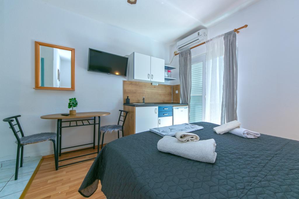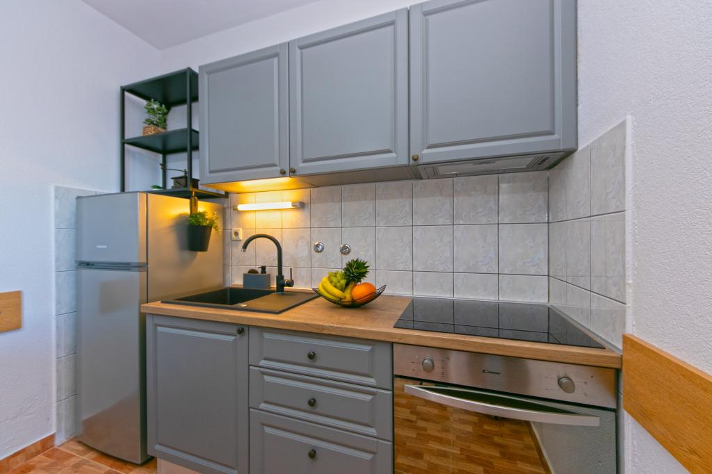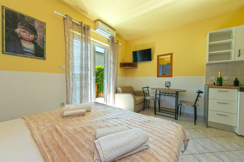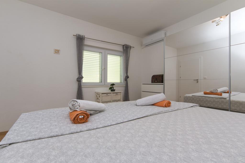 Apartments Hrvoje are located in an elevated position in the quiet part of Stomarica Street. Distance from the pebble beach is about 3 min. walk or 150 m. On one side of the house there is a view of the sea and the other has a view of the mountain Biokovo. The Jelčić family offer is quality and the guests can fully relax in the apartments and spend an unforgettable vacation. The apartments satisfy all the guests who want to spend a pleasant vacation. The accommodation offer includes apartments equipped with kitchen, bedroom, air conditioning, satellite TV, bathroom and balconies. Behind the house there is a garden terrace with tables where guests can relax while enjoying the peaceful atmosphere overlooking the sea. Also available is the use of an outdoor grill, but a friendly lady. Jelcic will be happy to help them. Parking is secured.