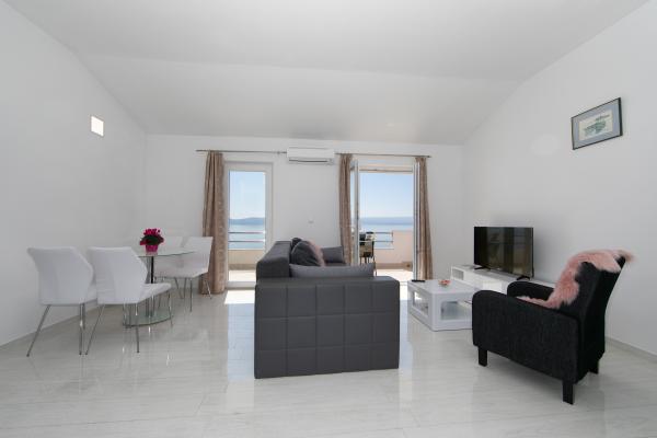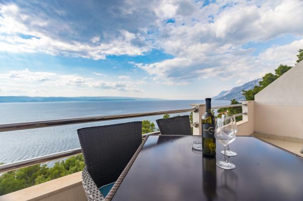 We stayed in Zvjezdana\'s apartment for 5 nights in early October and felt very comfortable. The house is quiet and is a bit higher, about 5 minutes walk down a fairly steep road down to the sea. The apartment is very clean, modern, new and very well equipped. The view from the large balcony is fantastic. Sun from morning to sunset. That\'s how we imagined it! :) Zvjezdana is a super nice and warm hostess, who is very concerned about the well-being of her guests. The promenade is beautiful and you can walk from beach to beach for several kilometers towards Brela and Baska Voda along the sea. There are several bars and restaurants nearby, but some were closed at the beginning of October. The restaurant Burin, which we also highly recommend, was very close and is open until mid-October. We would go back anytime and definitely recommend the apartment! Thank you Zvjezdana for the wonderful stay! Ulrike and Marc