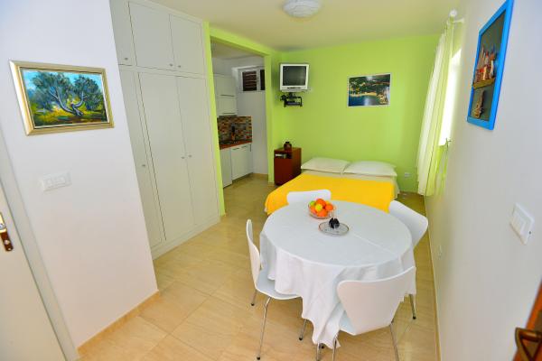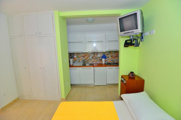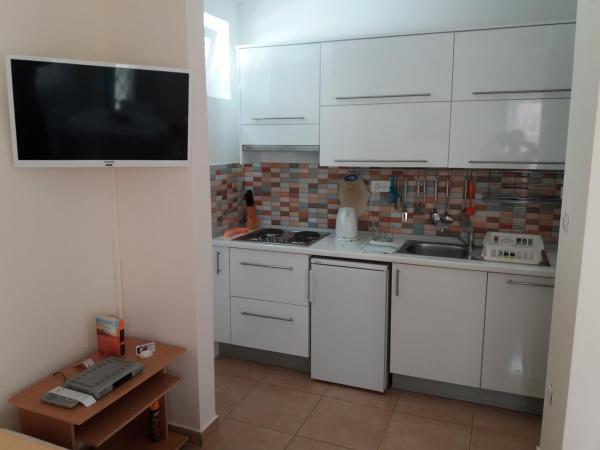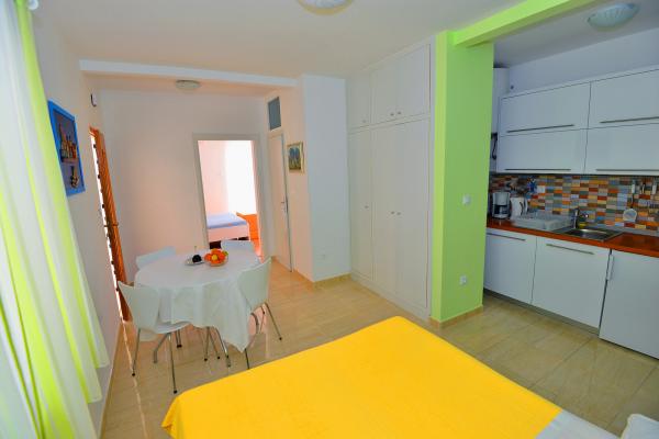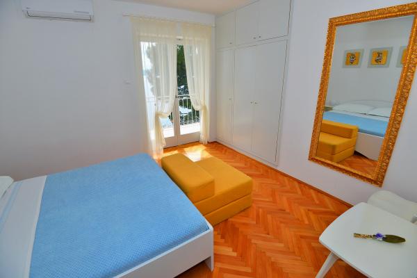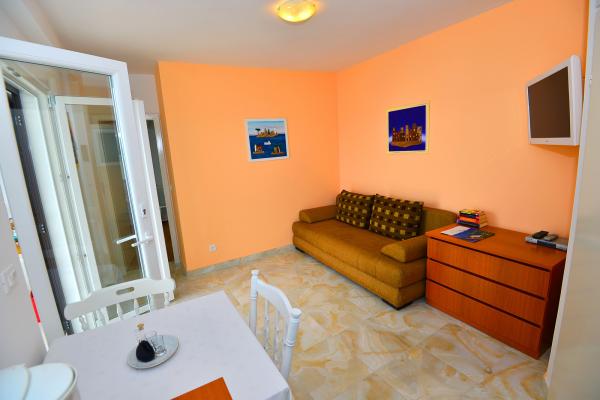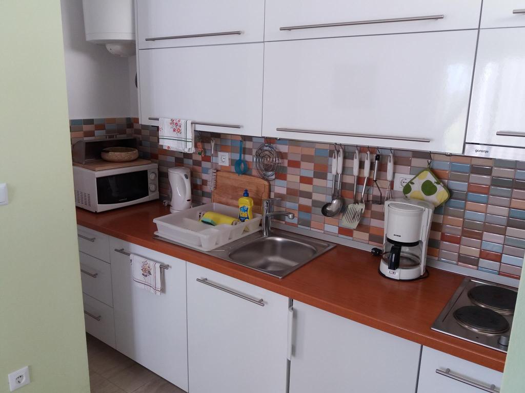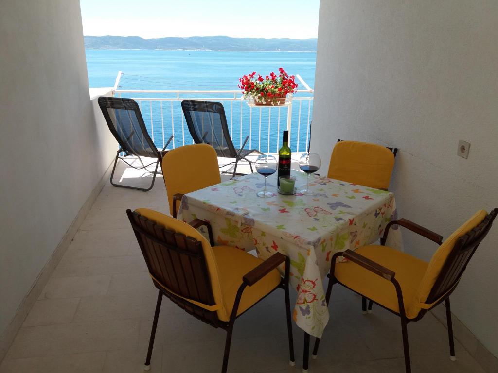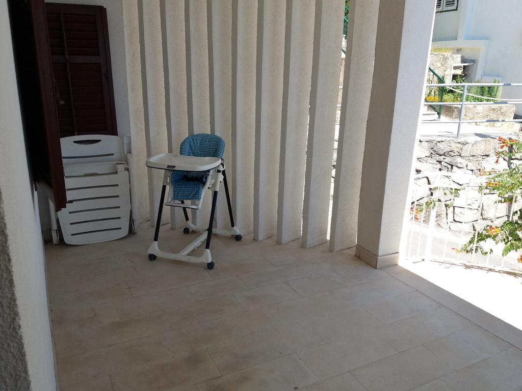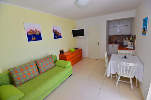Super location and great landlady Mrs. Edita and her mom, who make great cakes. The apartment has stunning sea views and a large covered patio in the shade, and if you want to have the sun on the balcony. The apartment is newly renovated, inside you have all what you need on holiday. Children enjoyed because it really enough space to play on the terrace and in the apartment. Also nearby is full of beautiful beaches. It is nice that all the toys, and beach you can let the beach in a separate room. The shop is quite close. In the evening you can walk along the coast. We enjoy and next year will be refunded.