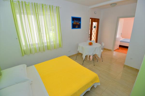 Apartments are located in a very beautiful place. With a huge balcony offering splendid views of the sea and islands. Silence allows you to enjoy the rest. Rooms are cozy and very bright, everything is done for your comfort. The apartment has everything for a holiday by the sea: umbrellas, mats, air mattresses, flippers and mask for diving, children\'s inflatable toys, chairs. Near apartments there is a restaurant \"Mediteran\" with Croatian cuisine. Delicious! This apartment is all set for a comfortable and memorable stay. Enjoy! Special thanks to wonderful hosts: Lenka, Edita and Zvonko!