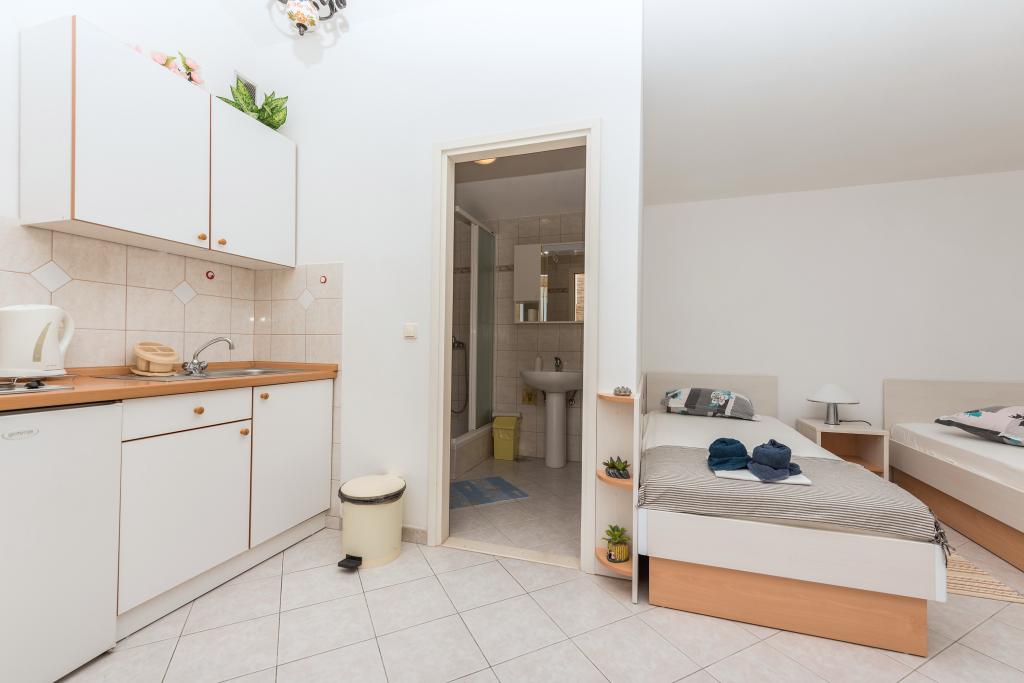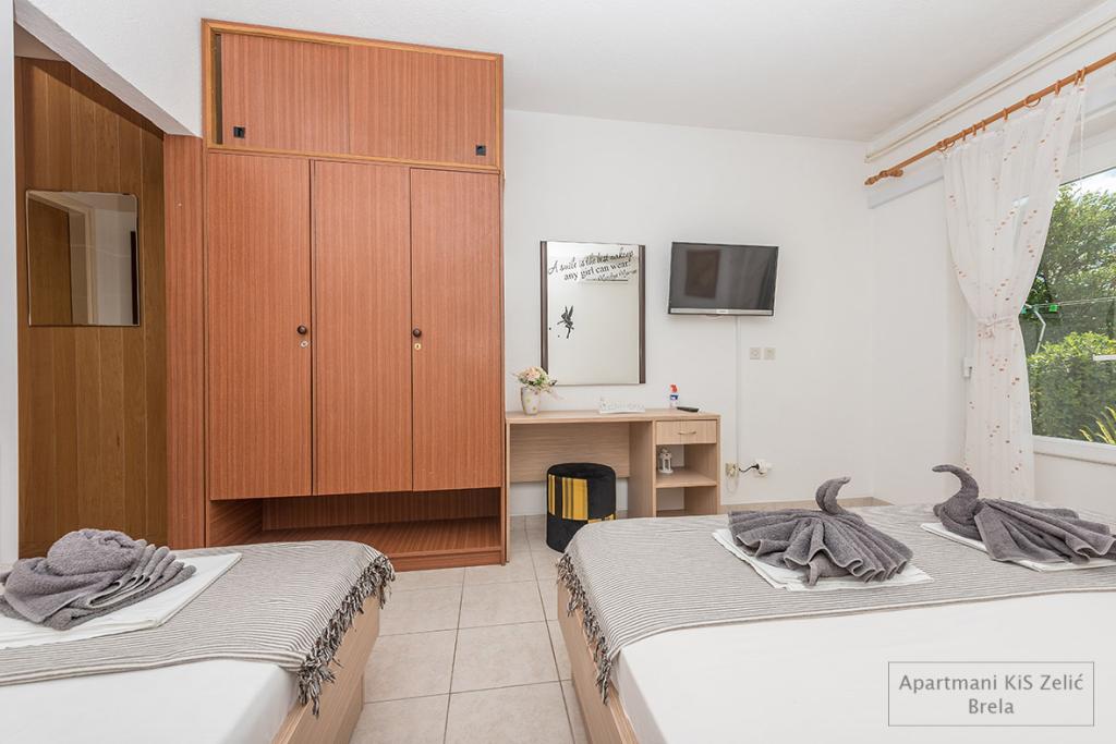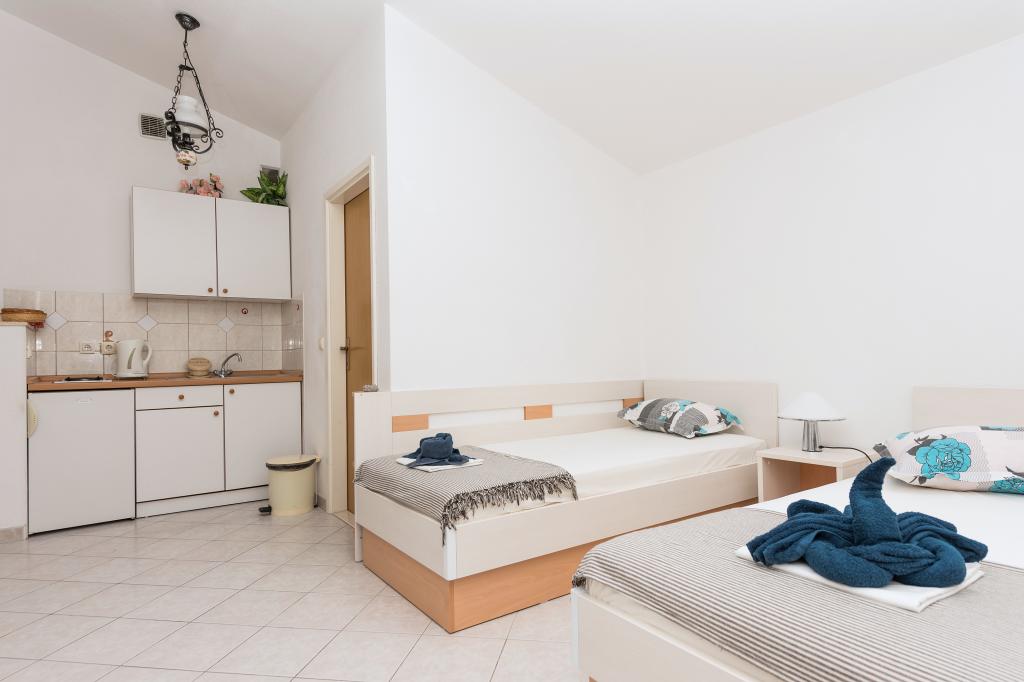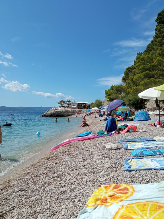 Apartments KiS Zelić are located in a quiet location, only 100 m from the sea and beautiful pebble beaches. On one side there is a beautiful view of the sea and islands, and on the other of the mountain Biokovo. The apartments offer everything you need for a pleasant stay. The rooms are equipped with complete bed linen and towels. Towels are changed every 3 days, and bed linen every 7 days. The kitchen with dining room is equipped with a stove, refrigerator, kettle, complete dishes and cutlery. Each apartment has a terrace or balcony, satellite TV, WiFi and parking. The nearest market is 200 m away, a restaurant with Mediterranean cuisine 200 m away.