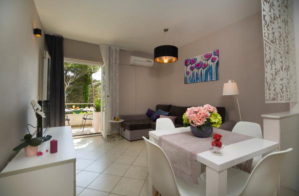 A beautiful apartment in a beautiful place. The location is excellent. Quiet place, beautiful view from the terrace... The hosts are excellent... The apartment is top ten, you have everything you need. Everything clean and modern. We will be back for sure...