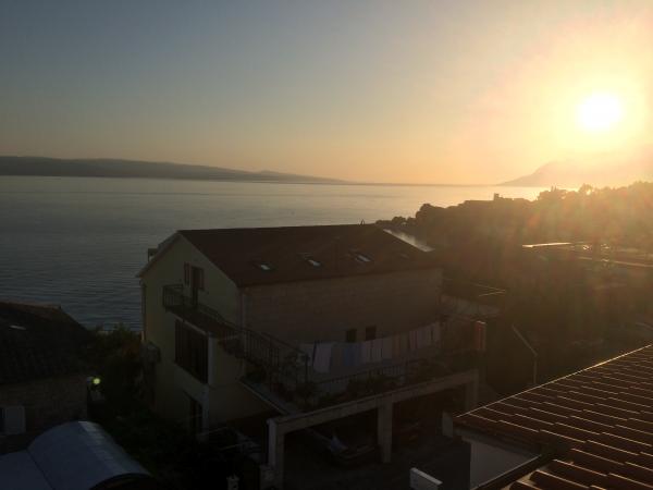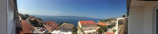 The apartment is just like in the photo. The fridge cools well, the air conditioning works, the view from the balcony of the sea and the island of Brac. The hosts were very nice and gave us a whole bottle of rakija when we left. It's a 15-minute walk to Baśka Voda and the same time to Kamień Brela. The only minus for me is the stairs to the beach. Showers on the beach are free. I would highly recommend.