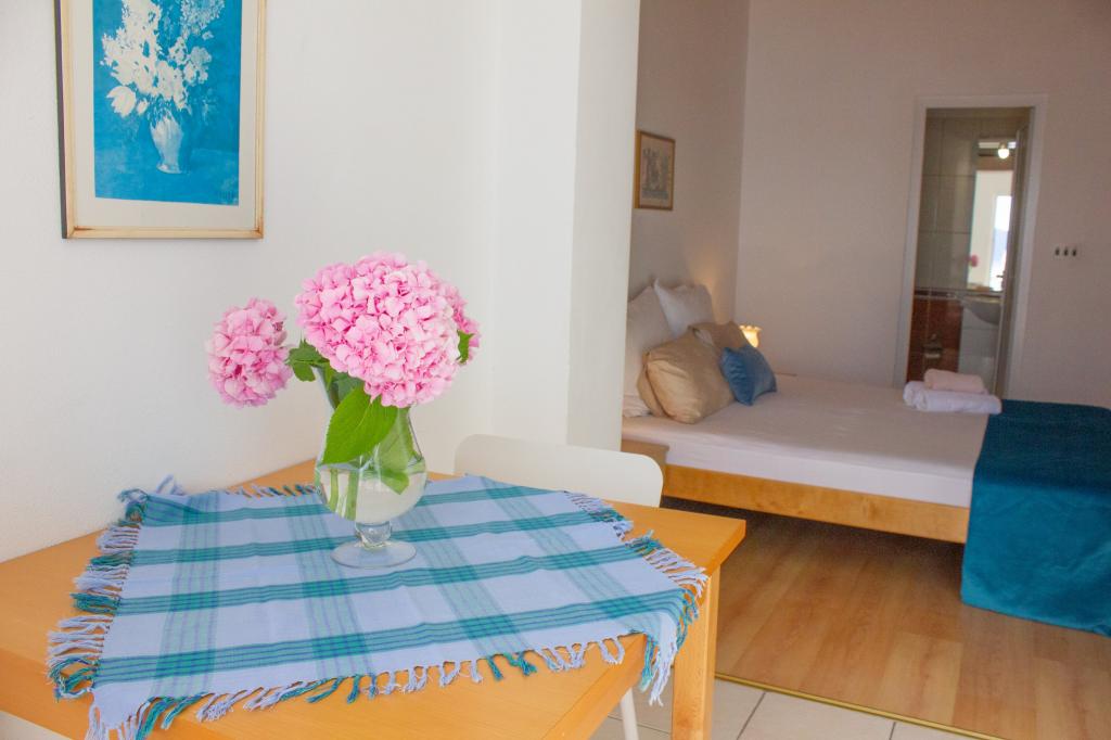 To begin with, I would like to mention that there are 230 steps from the apartment to the beach. Another thing is parking. Arrived at the apartment and the lady says let's park our vehicle behind the vehicles of the other guests. To my question, what if that person we parked has to go out with the car, she answers that she will call us to move her car so that other guests can get out. Unacceptable. Another unacceptable thing is the host's entry into the apartment when we were not there, of course they entered to check if the air conditioner was working because it is a capital offence. The apartment is in the attic and it gets terribly hot inside, so air conditioning is necessary. We left the air conditioner running for 2 hours when we were away and the lady came to warn us that we shouldn't do that, because she entered the apartment when we weren't there to check. The air conditioner itself works poorly, i.e. it takes an hour to lower the temperature by 2-3 degrees. You can also feel the air conditioning because it is too expensive before the season to buy a spray for 10 euros and clean the air conditioning. The balcony door cannot be closed all the way because it is broken, the lady of course asked why it was not closed all the way when she was on patrol in our absence. The bathroom has neither a window nor a fan, but thank God it has a ship's floor on the ceiling, which can be felt by its staleness. The shower cabin leaks on the floor because the seals around the cabin are not good. The wardrobe is a legacy from a bygone era, and the hangers in it are sticky. I couldn't get the glue off my hands or the t-shirt I hung on that hanger. Cutlery is sitting in a drawer that has not been cleaned for a long time. The TV is actually a monitor in the function of a television. Basically, I do not recommend this accommodation, and I can attach pictures as proof of all the above. We decided to leave the apartment early and look for more adequate accommodation. The hosts did not decide to return the money for the days we were not with them, and we paid for the entire planned stay on the first day upon arrival. Error.