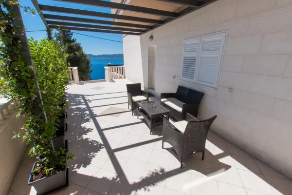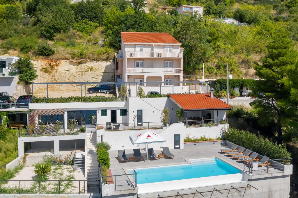 Villa Matko oasis offers accommodation in seven apartments of your choice. Each apartment has a balcony with sea view, a fully equipped kitchen, fully air-conditioned apartments and shared use of a heated swimming pool. A covered terrace with a gas barbecue, a seating area and an outdoor kitchenette is also available for use. Prepare and enjoy meals with your family while the younger ones play in the pool.