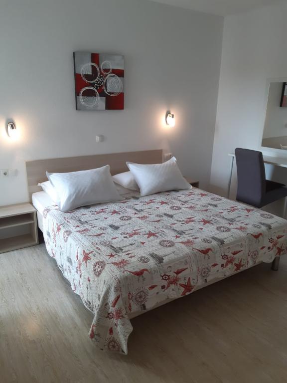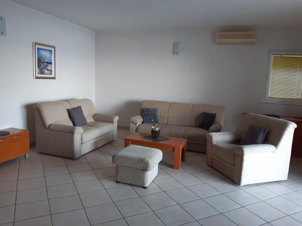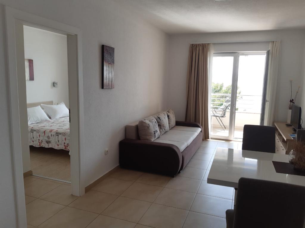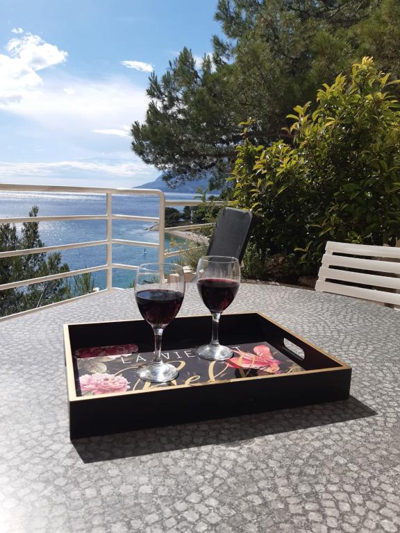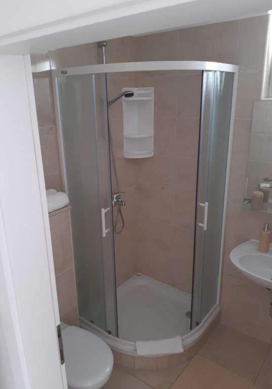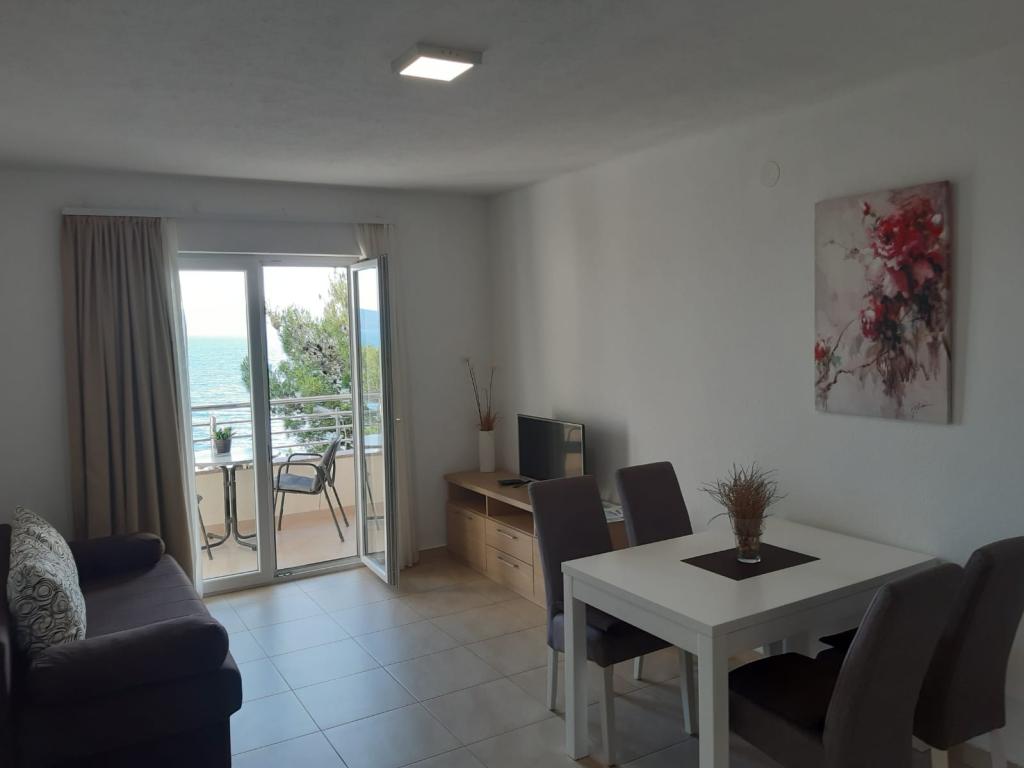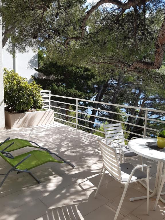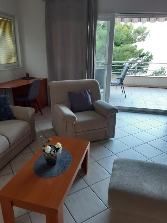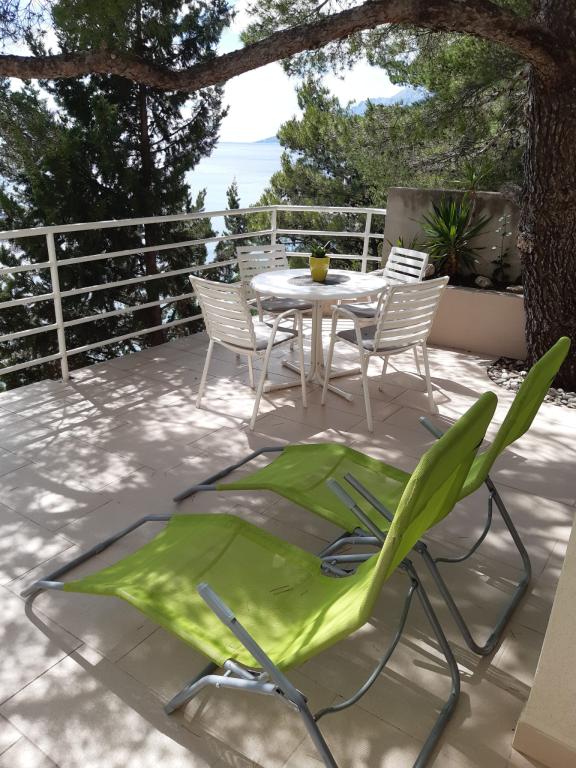 Our house is located on the first row to the sea in Brela, an ideal place to rest and enjoy the benefits of the Mediterranean landscape. We offer five modernly equipped apartments with a terrace and/or balcony with a beautiful view of the sea. From one of the many sandy beaches you are separated by a short descent down your own stairs surrounded by pine canopies. Also, the most famous and largest, always sun-bathed Breljan beach, Punta Rata, can be reached in just a few minutes. Other amenities such as shops, restaurants, cafes and souvenir shops are available in the immediate vicinity. The price includes a welcome drink, as well as parking. For all of you with an adventurous spirit, there is also the possibility of renting a kayak, and if you prefer relaxing activities, we also offer a body massage (sports, relax, etc.).