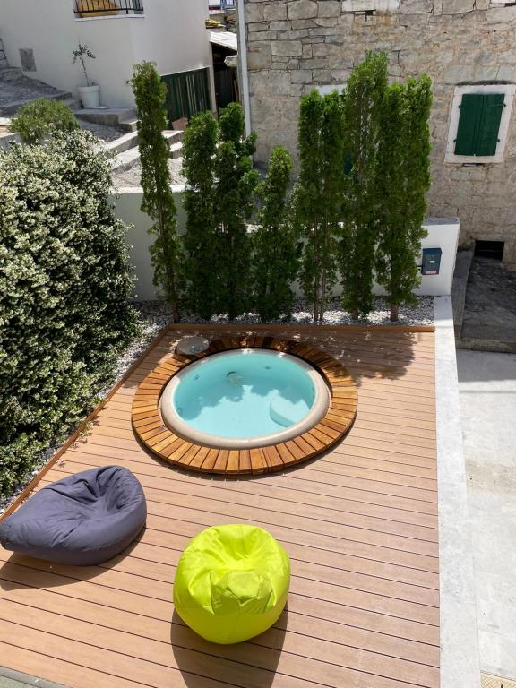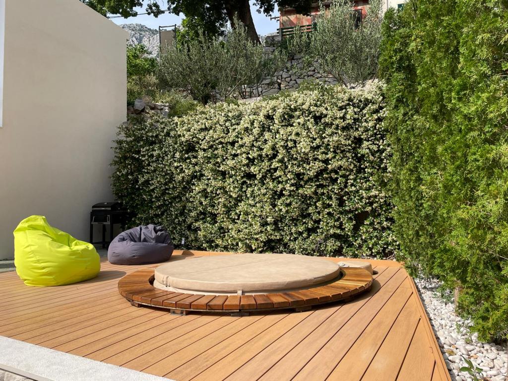 Old Village Brela is situated in a typical Dalmation surrounding, far away from the city traffic and the crowds. Old Village is ideal for relaxation and escape from the hustle and bustle, and has five modern apartments. On the terrace with two jacuzzi and lounge our guests can relax and enjoy the beautiful view of the sea and the magnificent mountain Biokovo. All apartments have air conditioning, satellite TV, WiFi. The nearset beach can be reached in 400 m, Punta Rata Beach in 1 km and Brela centre in 2 km.