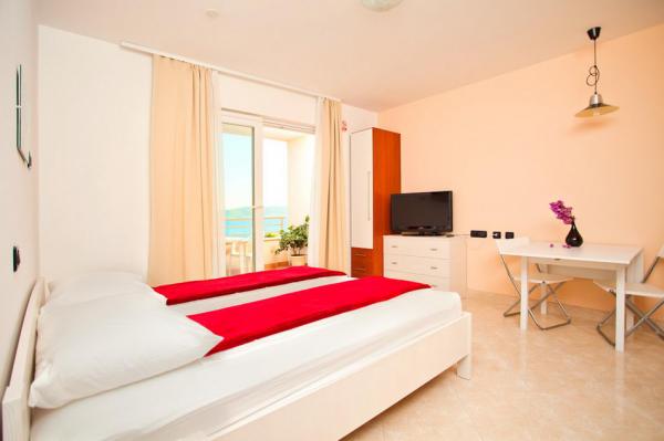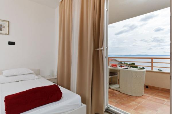 Apartments Brela-relax are situated 150 meters from the beautiful pebble beach with clear blue Adriatic Sea. We have 3 Studio Apartments (2 persons child under 7) and 3 Apartments (4 2 persons). Every apartment has a large balcony with the sea view, parking space, air conditioning and wireless internet. Apartments are 10 minutes walk from the center of Brela and 15 minutes walk from the center of Baska Voda, and supermarket is only 50 meters away. We are situated in a very quiet place where you can visit islands of Brac, Hvar, Vis, Korcula … You can also visit: Dubrovnik 160km, Split 50km, Makarska 15km, Medugorje 100km, Mostar 130km. You can also go rafting, hiking, scuba diving, paragliding. Included in price: tourist tax, air conditioning, wireless internet, parking, pool with massage, shared washing machine, towels, bed sheets.