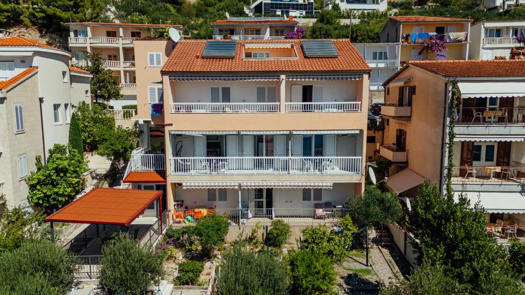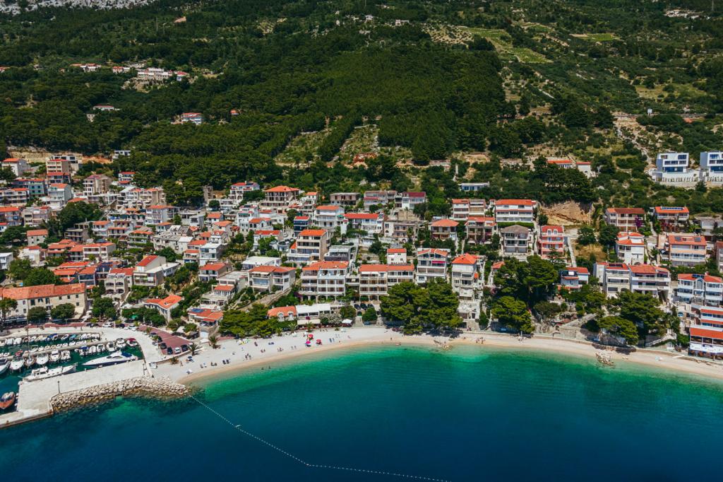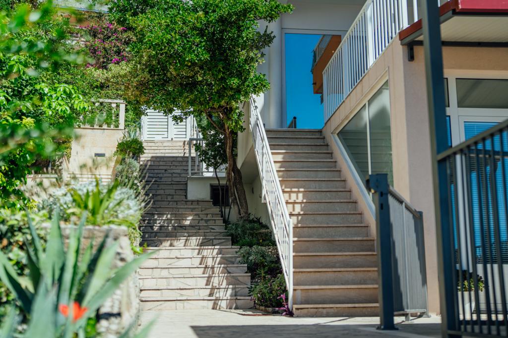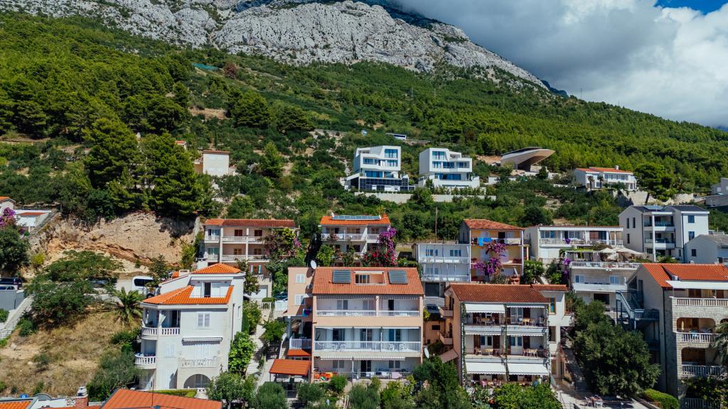 Residential tax is included in price.I recommend apartment A5+1. We arrived as a family of five, with three teenage children. The accommodation, communication with the owners, and the appearance and cleanliness of the apartment were impeccable. The kitchenette could have been a bit larger (the worktop), but everything else was perfect. The owner, Milan, was incredibly friendly and helpful. After climbing dozens of stairs, we reached the beach, but that's the charm of Brela. Shops and restaurants are nearby.