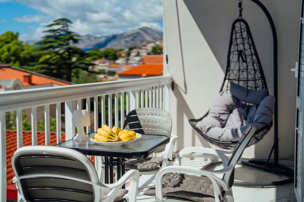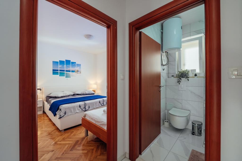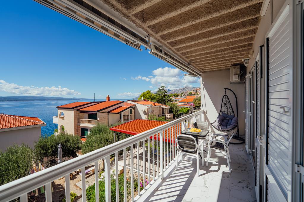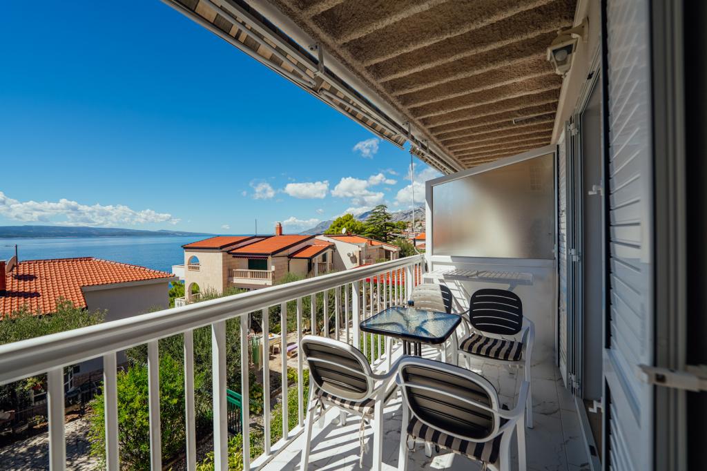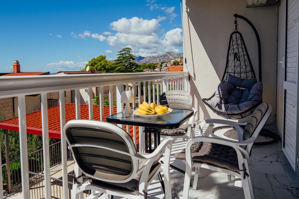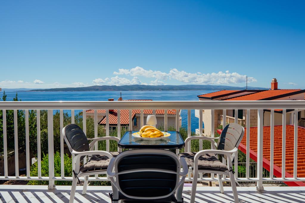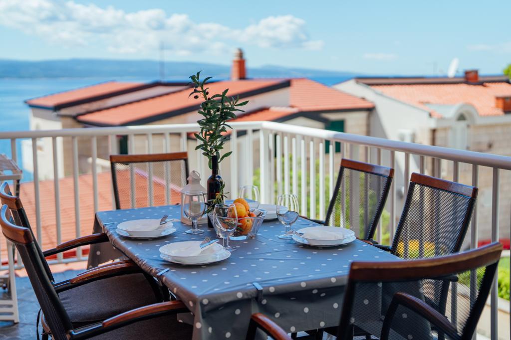 There were five of us in A5+1. The apartment is very clean and nicely furnished. Everything you need is there. The furniture in the bedroom is also new and the large bed is very comfortable. Two air conditioning units in the apartment are also an advantage, so that the entire apartment is pleasantly cooled. Very nice terrace with sea view and comfortable furniture. After about 3 minutes walk the sea is very close. Brela is located on a mountain, a beautiful place, but you have to climb a lot of stairs to get there. The hosts are very nice and helpful people. Ivana and Milan, thank you for everything you did for us.