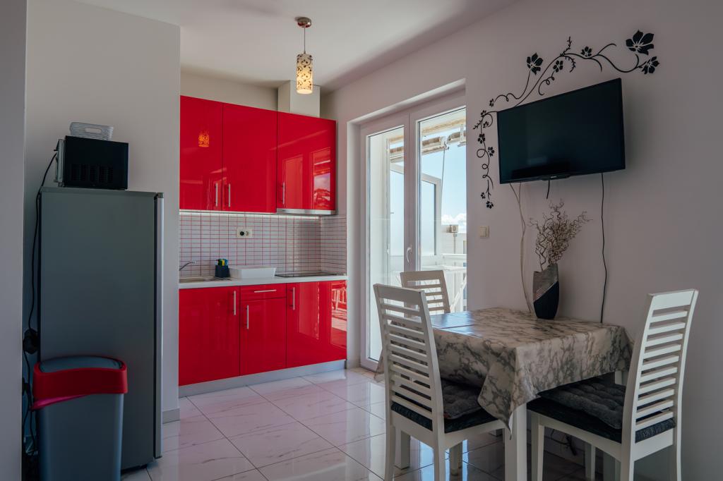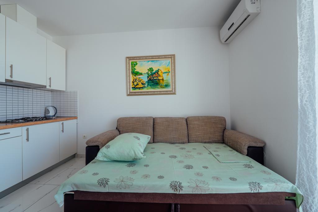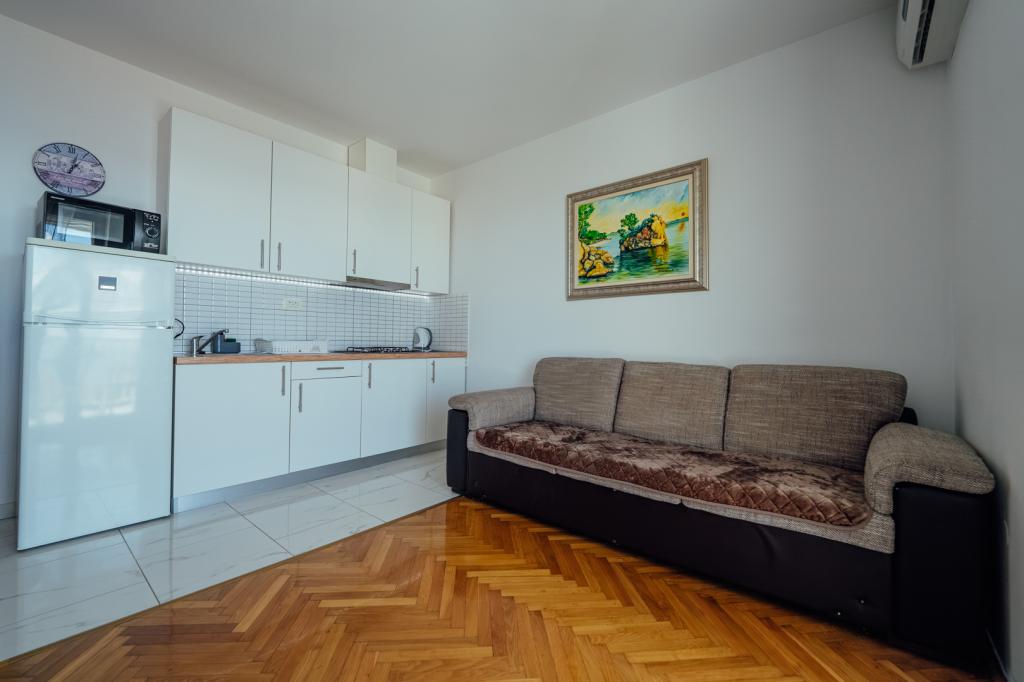 Very nice apartment, new, clean, with a kitchenette and a sea view from the balcony. The hosts were very nice and helpful (a car mechanic was quickly arranged due to a small problem with the car, a decoder was arranged to see the Euro, and an invoice was issued). "No problem" with anything. Best regards and we heartily recommend it to everyone