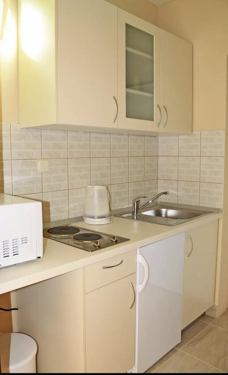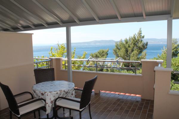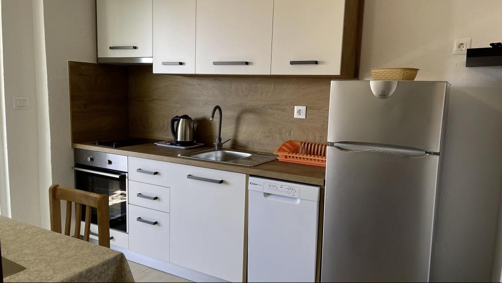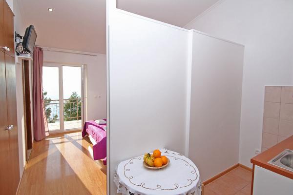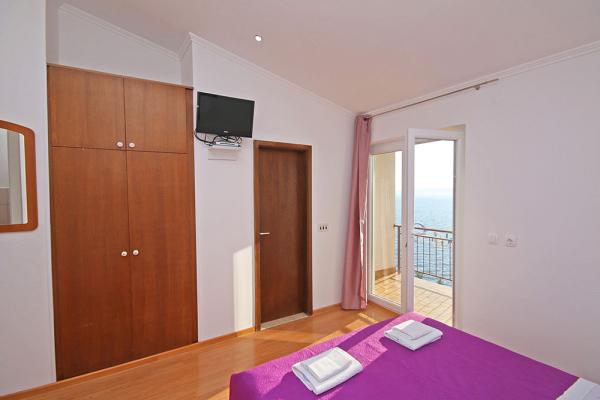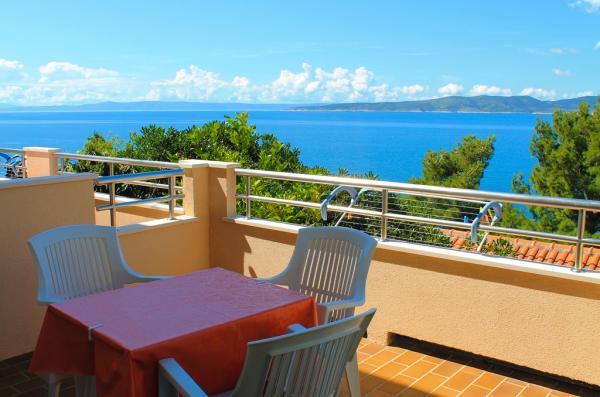 We arrived from vacation and immediately write a review. Room: everything corresponds to the photo. The room is spacious, clean. bright. A small kitchen with all kitchen utensils and dishes. Refrigerator, microwave, electric kettle, TV, air conditioning. And the view from the balcony is gorgeous. It was very pleasant to sit on the balcony in the evenings. When we arrived, the hostess greeted us and offered us refreshing drinks from the road. Very friendly hosts, who made sure that we were comfortable during our vacation. The apartments themselves are on the first line, you have to climb the stairs. a kind of daily exercise. For older people, it will be difficult to climb. We were looking for apartments away from the center of Brela. We wanted silence and we got it. It is quiet in this part of Brela. We liked everything. We recommend these apartments for relaxation. And Brela in general.