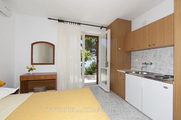 Victoria Apartments are located in a quiet part of Brela - Jardula, ideal for relaxation and escape from the hustle and bustle. We are only 30-50m from the sea. The beach can be reached in part and the stairs. Because of its location in the first and second row to the sea, the apartments have a view of the sea and the island of Brac. The apartments are located on the ground floor and first floor with balconies or terasom.Svi are air-conditioned and have free wi-fi and our guests are guaranteed a parking place. It offers double A4 3 apartment, brand new A2 2 apartments and apartments / studios for 2-3 persons. Only a few hundred meters from us are quality restauran and beach-bars.