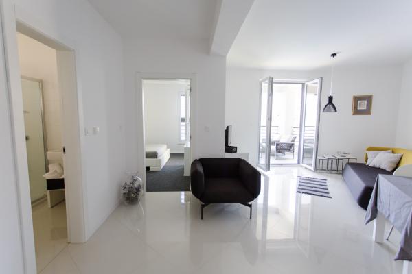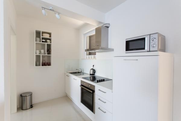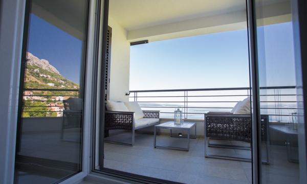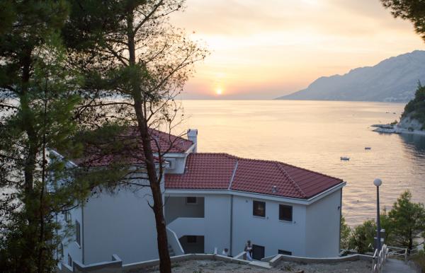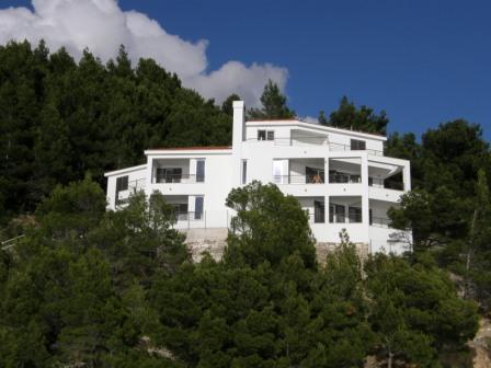 New house in a remote area above the sea with four spacious and modern apartments. Built 2013th It is located just above the beach, by the sea.