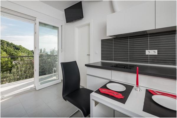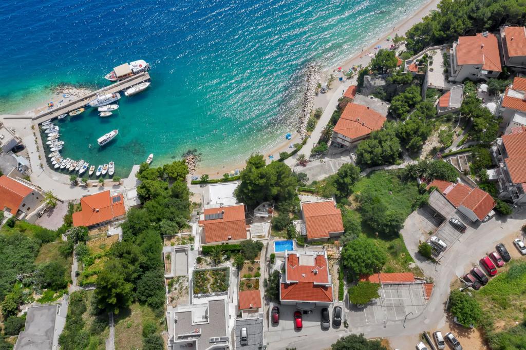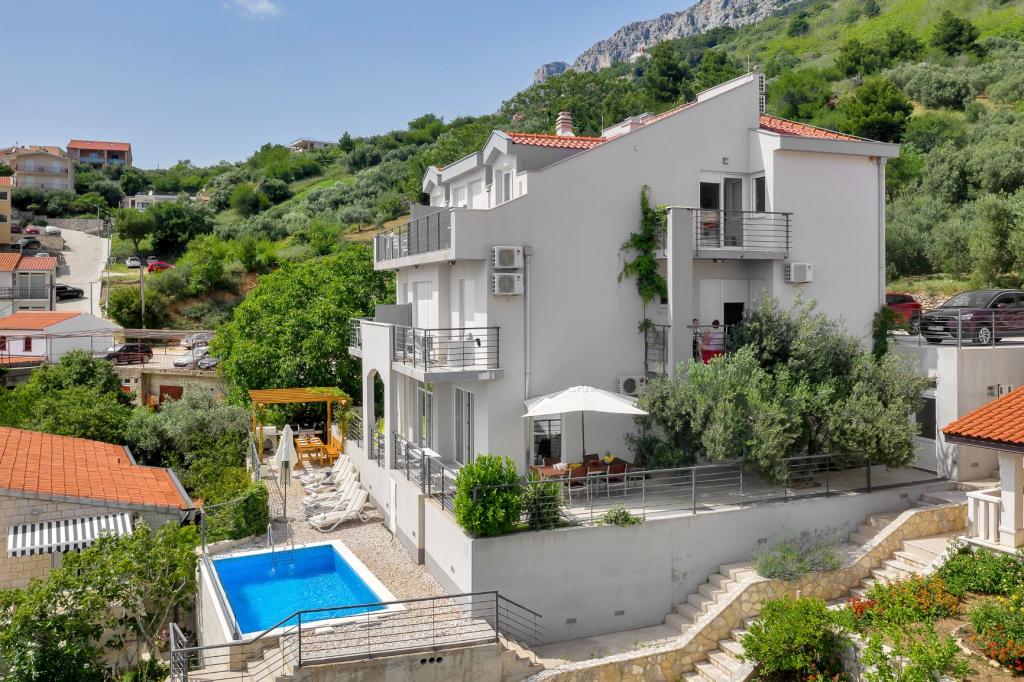 Villa Mila is located in a quiet part of Brela - Stomarica, 50m from the clean, sandy beaches. The property offers the use of an outdoor swimming pool, barbecue, private parking. The apartments are modern, air-conditioned, have a fully equipped kitchen, bathroom with shower, LED satellite TV, Wi-Fi, and a balcony overlooking the sea and islands. Welcome!