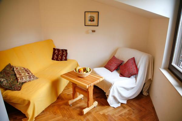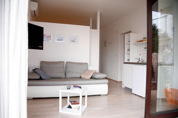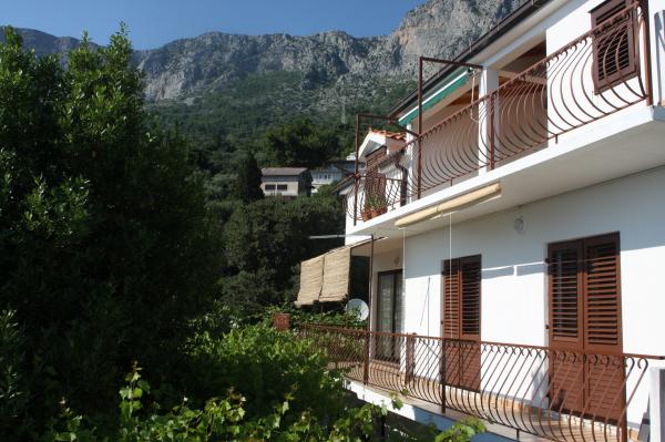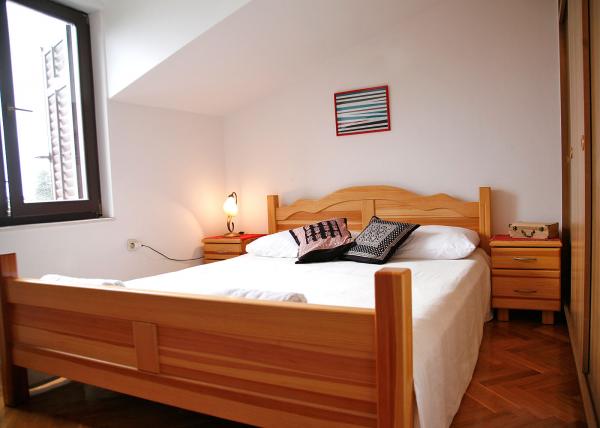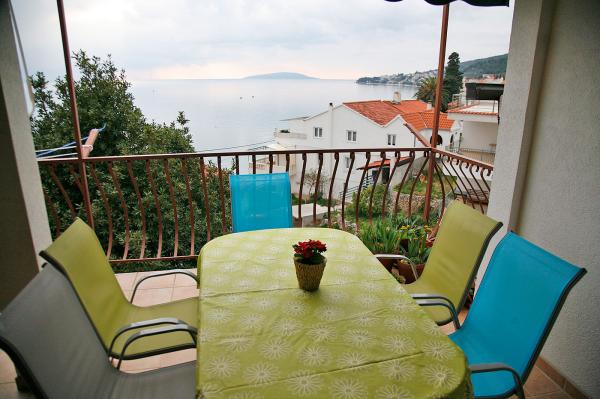 Our house is situated in a prime location, close to the beach (3 row), cafes, restaurants, walks along the beach and the town center. Surrounded by family houses. Apartments in our house offer you peace, quiet and very pleasant atmosphere. Both apartments have free Wi-Fi. Our accommodation units are spacious, simple and modern. They have a fully equipped kitchen, bathroom, balcony or terrace. What I would highlight is certainly a beautiful view of the sea and islands and the mountain slope.