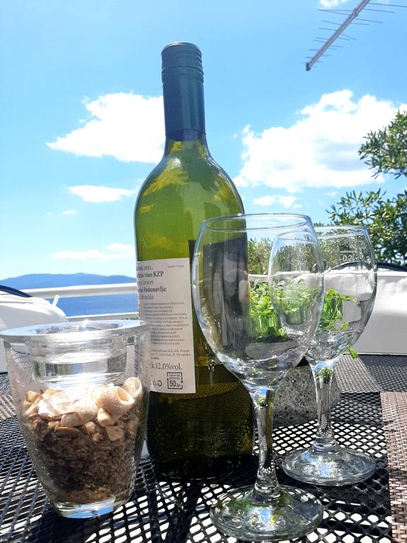 I recommend the apartment with all my heart this place and these people simply delighted us. Breathtaking views from the window, warm welcome by the hosts with wine and brandy. The place is just perfect if you like peace and quiet, and at the same time proximity to a cafe or ice cream. spotlessly clean spacious rooms, the atmosphere at home. Not to mention the delicious fish we received from the owner as a farewell .... simply yummy. We are already counting down to next year ..... we will definitely be back.