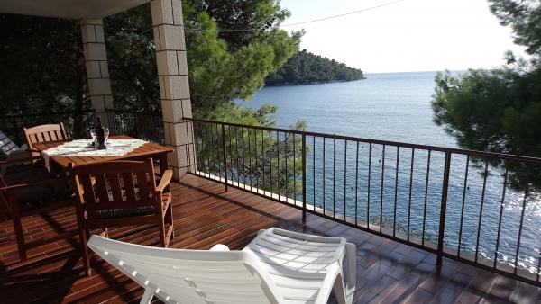 We are located in a small bay near the larger village, with clear and clean water. The apartments are located in a pine forest near the sea. The property has a large garden and the accompanying beach. The balconies are large areas, spacious. From the balcony you can see the seabed. In agreement with the owner, we offer a short boat ride to nearby uninhabited bays.