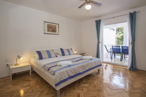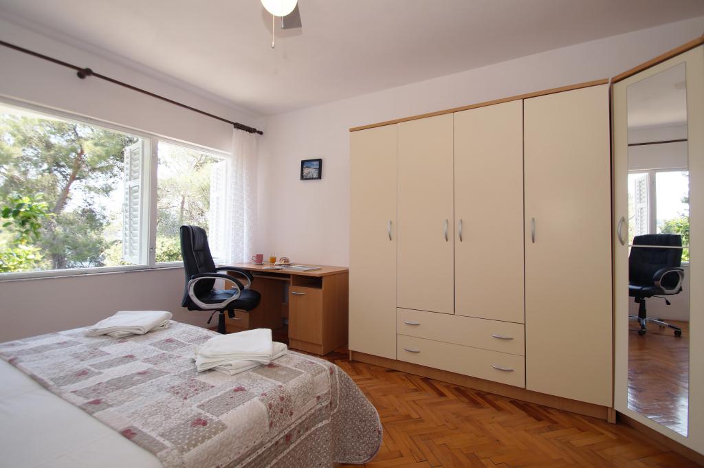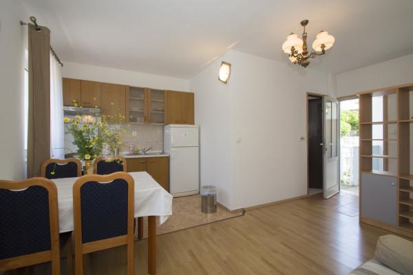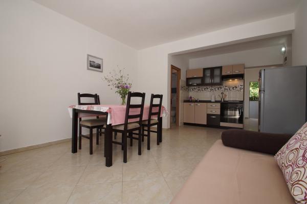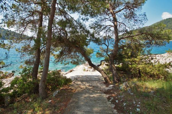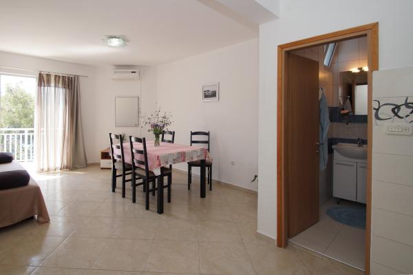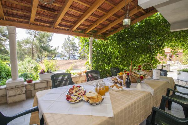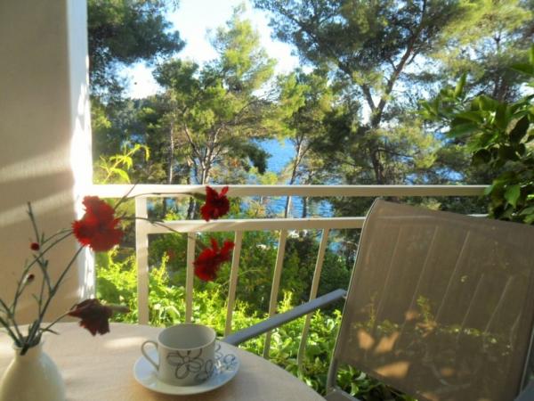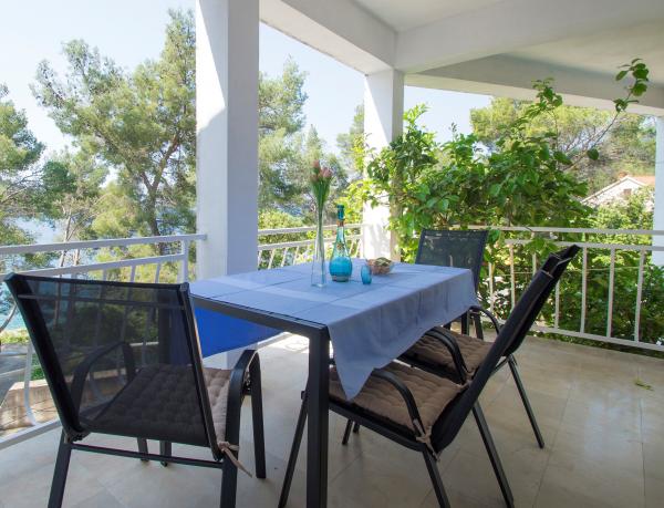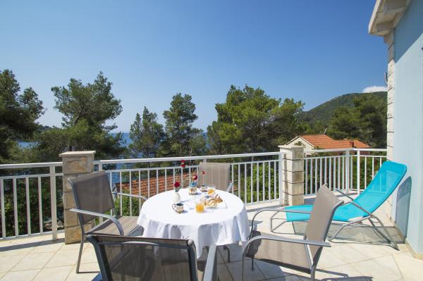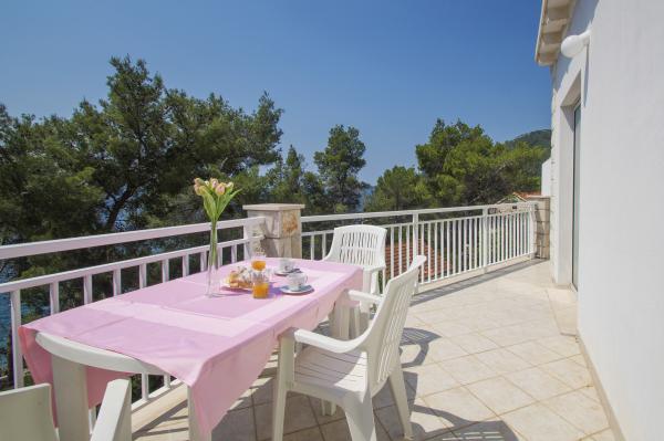 Very good place to rest. In apartments were my family and friends, and we rented all three apartments. We were very pleased with the service and hosts. When we arrived at the apartment the hosts have give us a welcome drink and offered tasty cake. In each apartment we were greeted by a liter of wine and juice. Later we bought from the hosts very good wine and brandy and very delicious homemade marmalade made of figs. We were in the apartment at the end of the season, in early September so there was no crowd on the beach, in restaurants, in shops ... Apartments are close to the forest and so peaceful and quiet, and when you sleep from some rooms you can hear the sea. Apartments are fully equipped, clean and tidy. In large apartment for 8 persons each room has its own bathroom, which is great. The hosts have a couple of times prepared a very tasty dinner. The beach and the sea is close to apartments, so we often went to the beach and apartments. The sea is clean, just below the house, in the beginning we had some problems because there are no stairs to get in and out of the sea, but we quickly mastered the technique. We toured the entire island, we are particularly delighted the town of Korcula. Korcula town is beautiful but also quite expensive. At the end of our holiday hosts have gave each family a small gift, small bottle of brandy and lavender, super souvenir:) This is very good place for holiday!!!