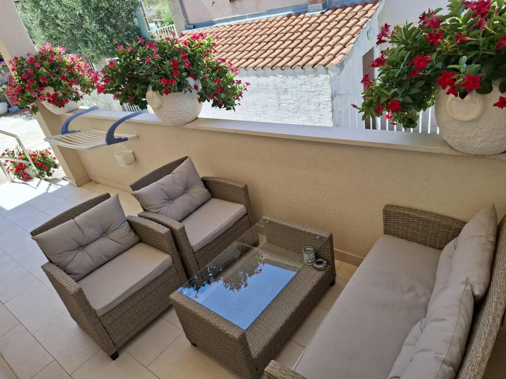 Residential tax is included in price. Booking confirmation document upon reservationGuests have free parking and free internet access. On the ground floor of the building have a barbecue and a terrace for socializing. All apartments are air-conditioned. Guests are welcomed with a welcome drink with a delicious bite of Dalmatian prosciutto and cheese. Guests also have the opportunity to visit our farm where we grow domestic fruits and vegetables, which they can buy and consume on their own.