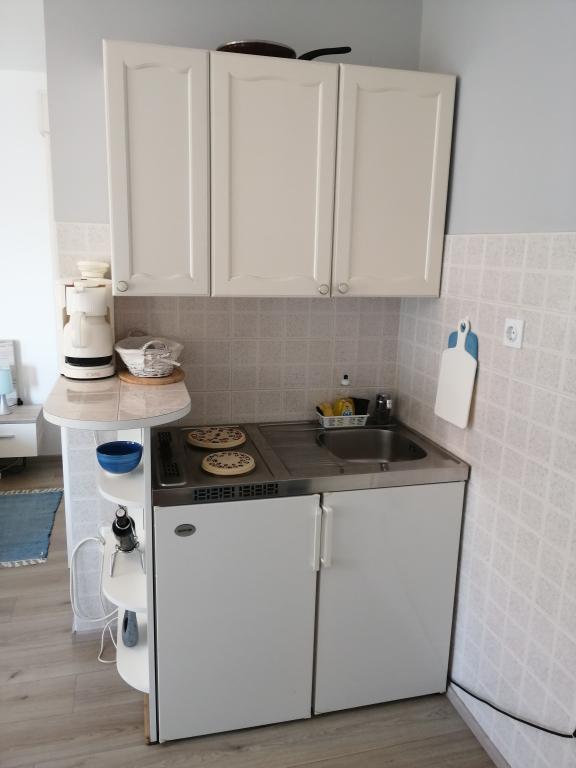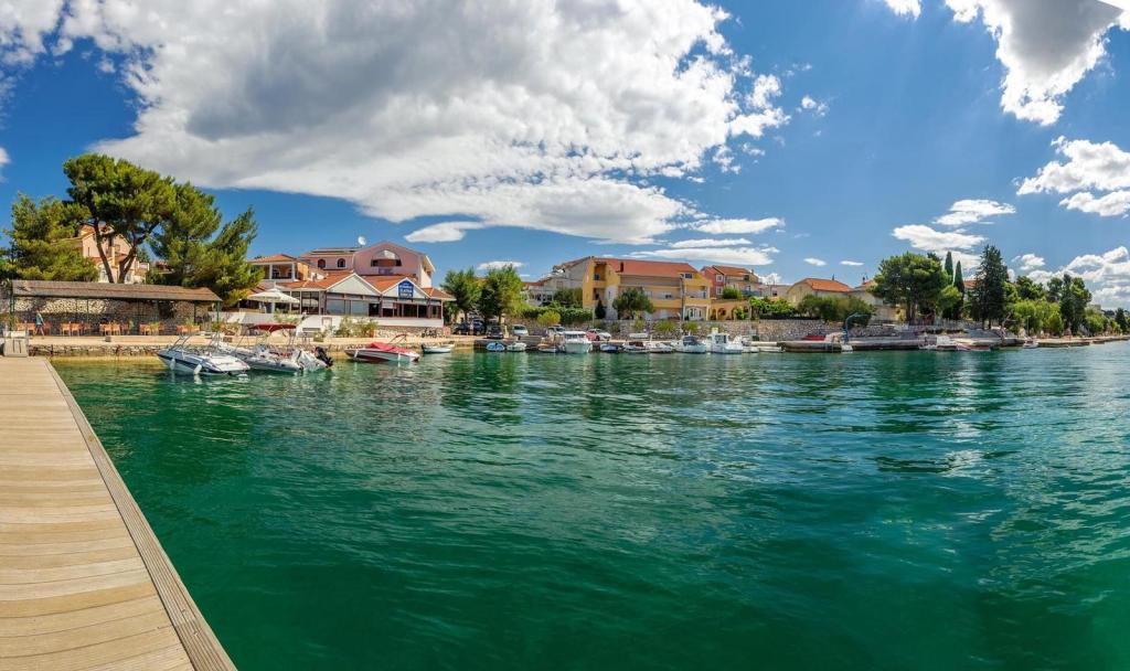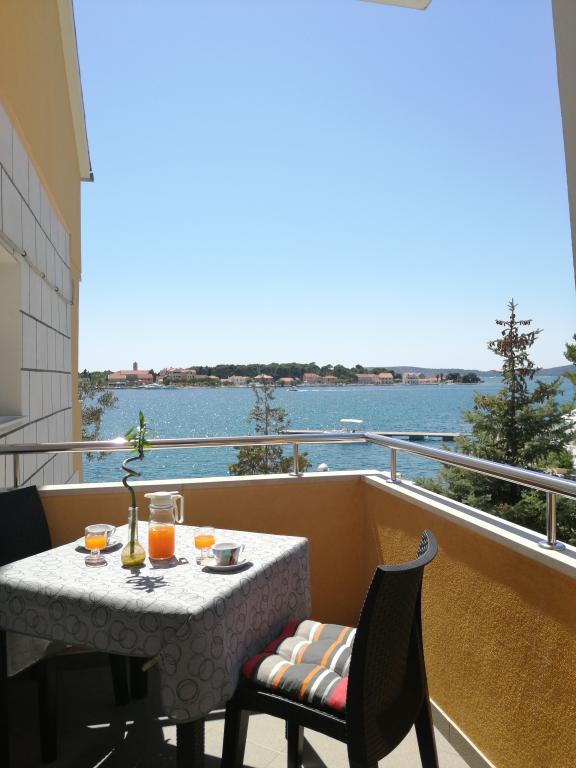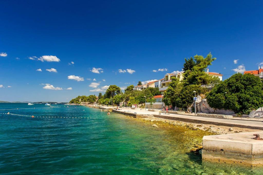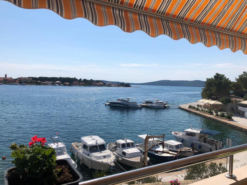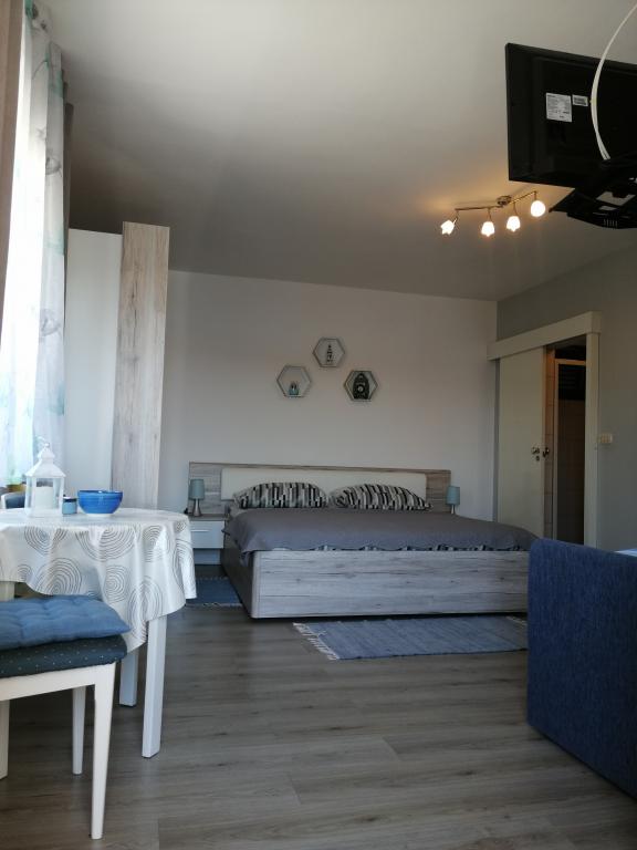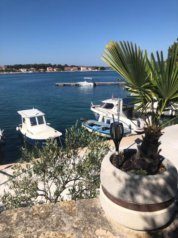 Our apartments are located first row to the sea in a beautiful bay in Brodarica which offers a view of the smallest island in the Adriatic - Krapanj. We offer 2 studio apartments that contain a fully equipped kitchen, bathroom with shower, free internet and parking and the possibility of using the barbecue. We also have an additional berth for a boat. In the immediate vicinity there are numerous coffee bars, pizzerias, shops and restaurants. Also within 100m there is a doctor's office, post office, ferry port that runs regularly to the island of Krapanj and a bus station for the city of Sibenik. An ideal starting point for the nearby Krka and Kornati National Parks and for the city of Šibenik, which offers a rich culture and various cultural and historical monuments. If you choose our apartments, we are sure that you will spend a pleasant and unforgettable vacation.